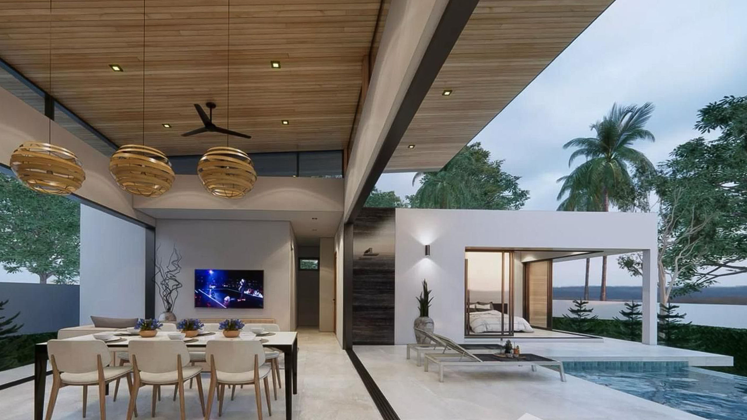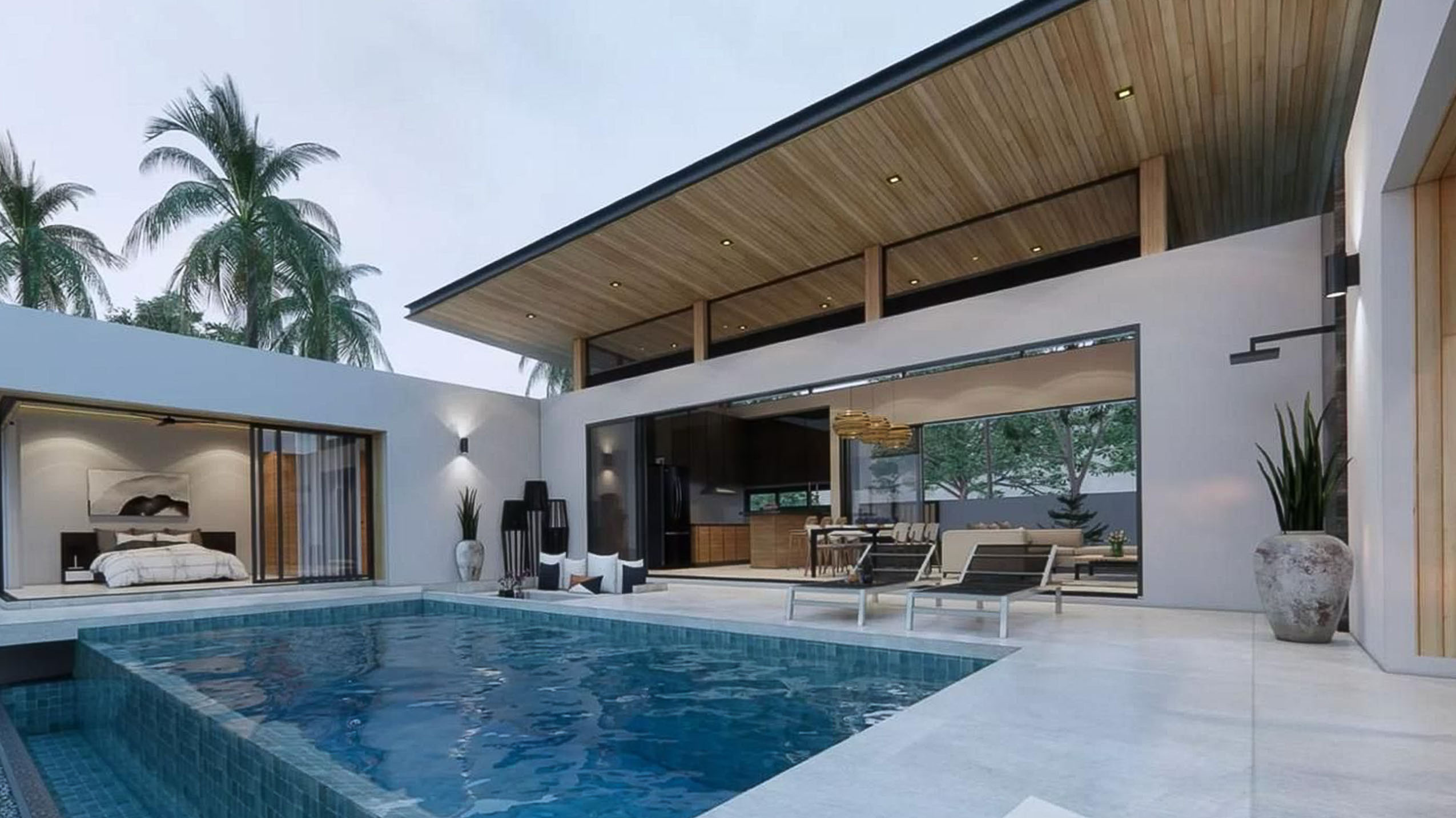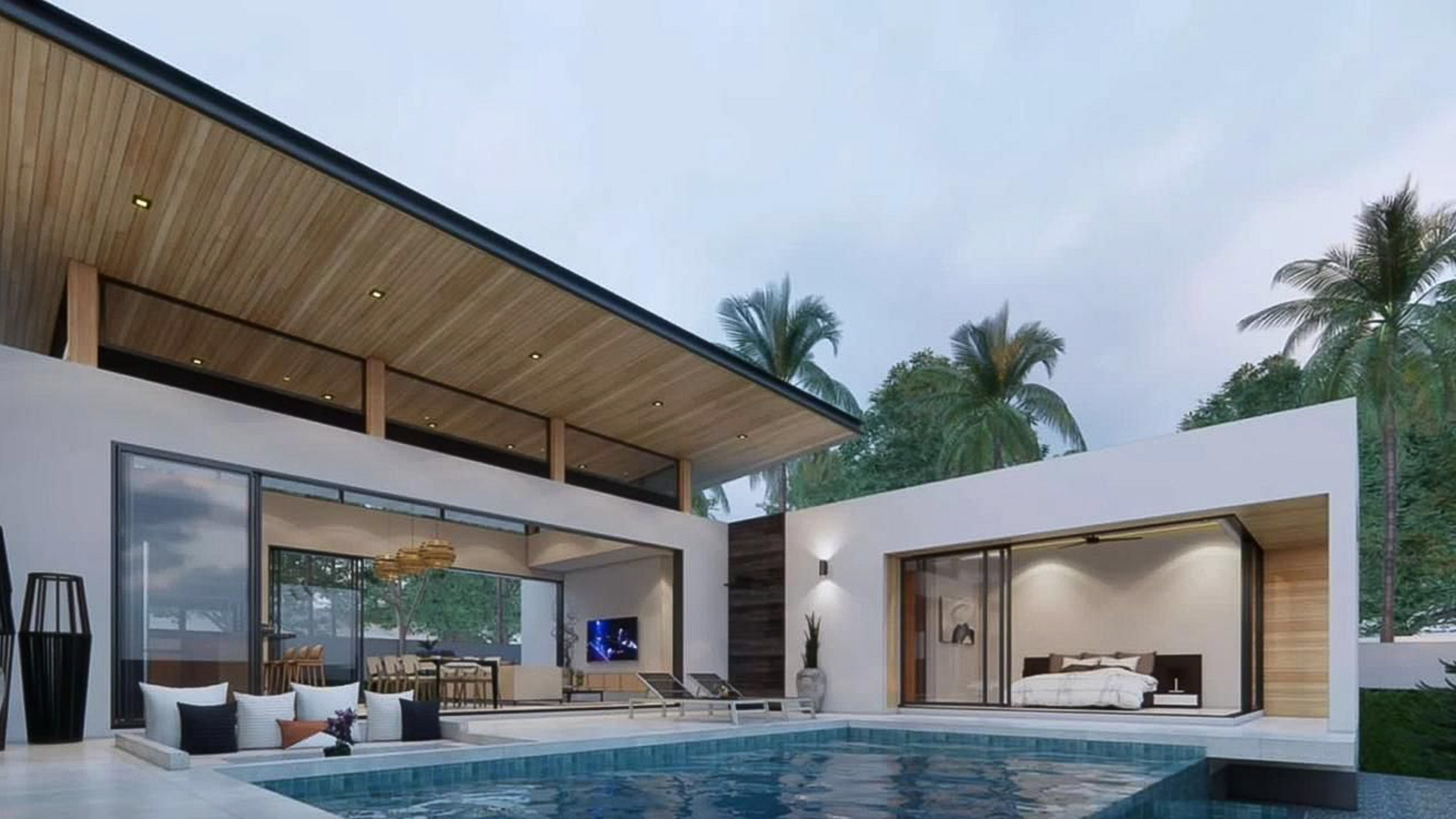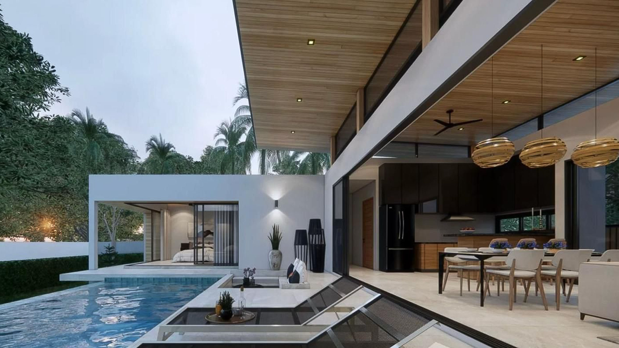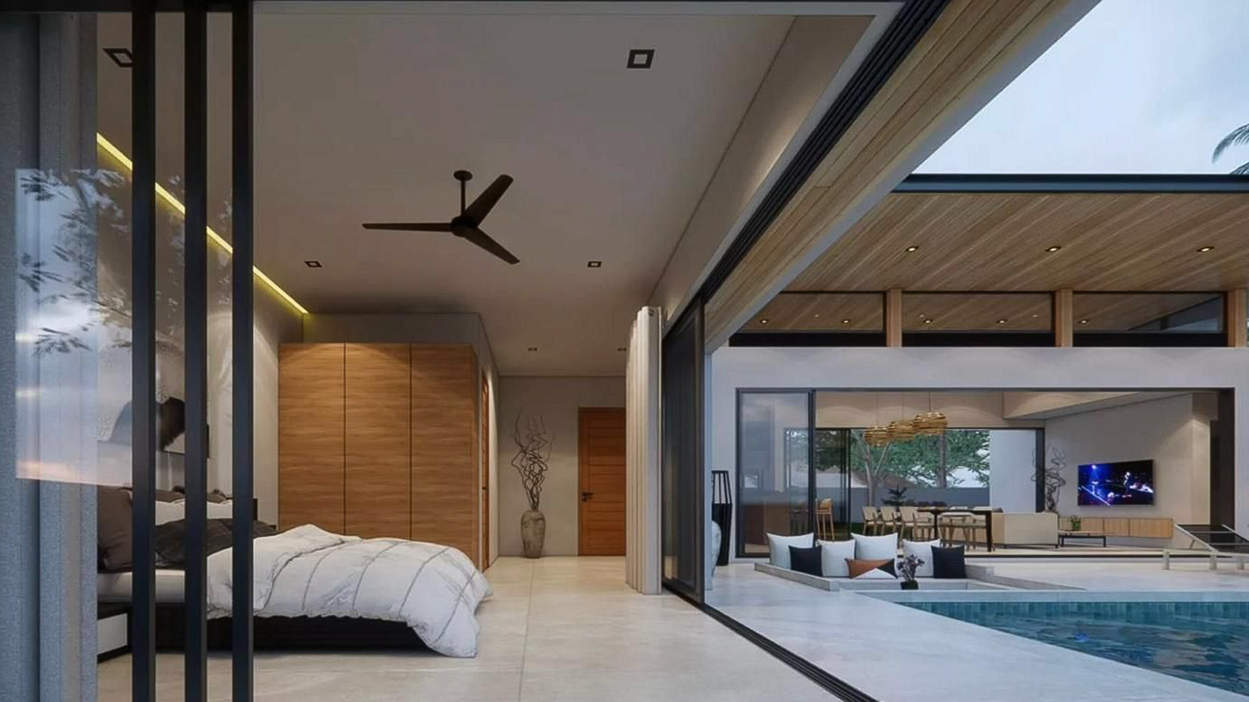 This modern tropical pool villa blends minimalist architecture with bold, artistic flair ? all set against a stunning mountain backdrop. Natural materials, high ceilings, and abundant light create a tranquil yet striking living space that feels connected to the surrounding landscape.
