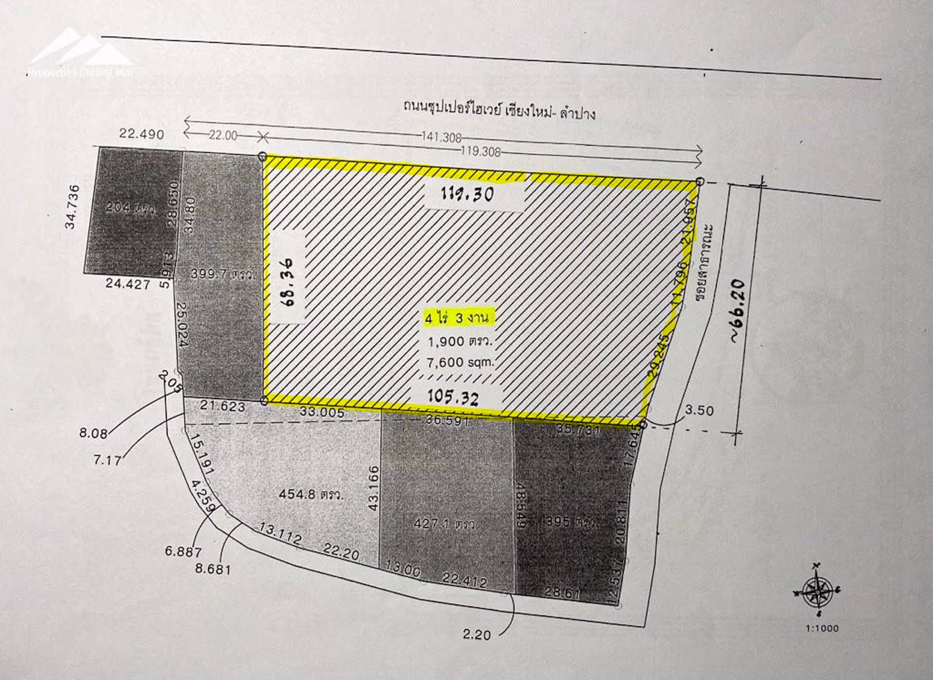 This prime 4 Rai, 3 Ngan (4-3-0) plot of land in Fa Ham on the Superhighway (Highway 11) is ready for development!