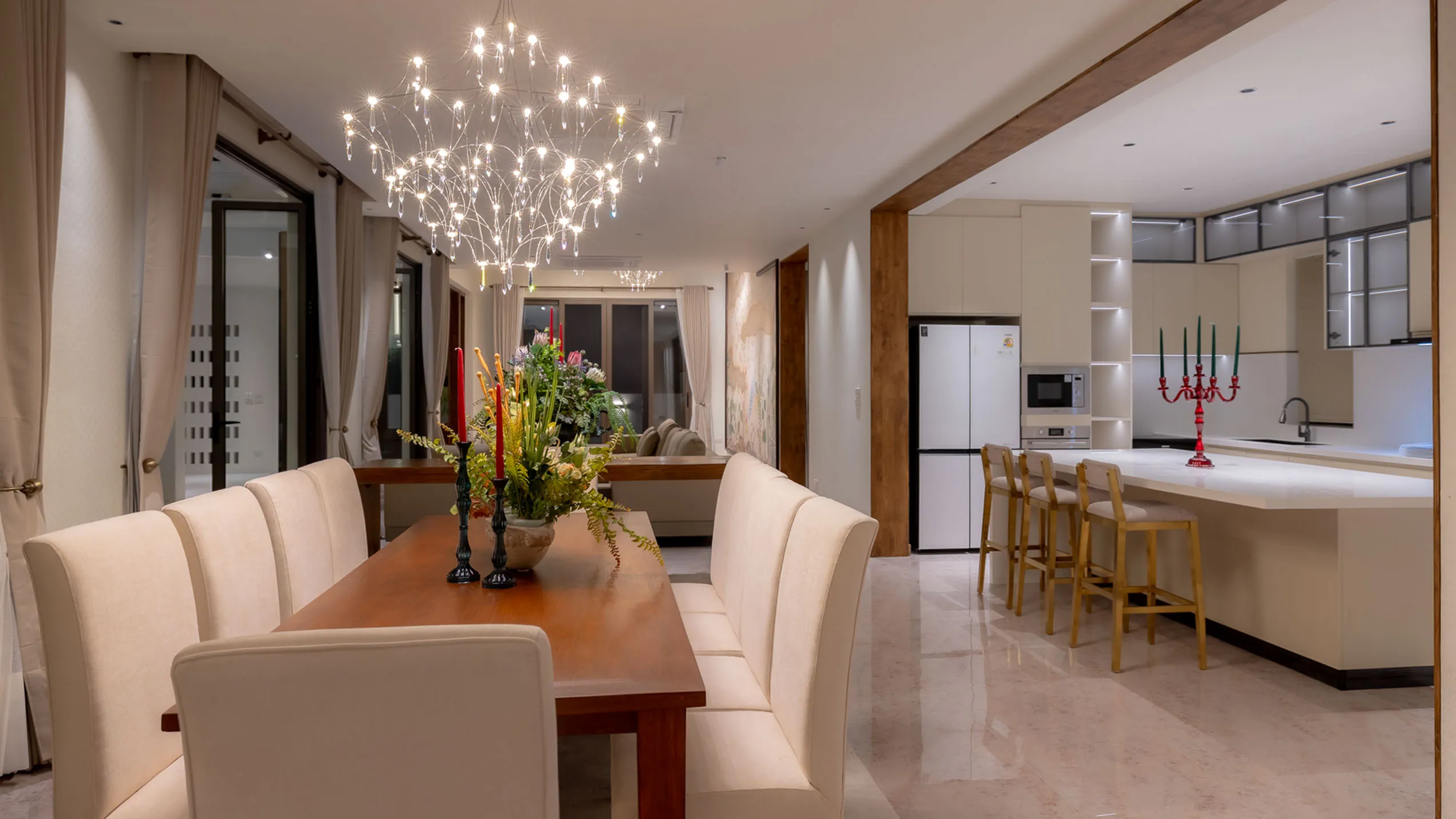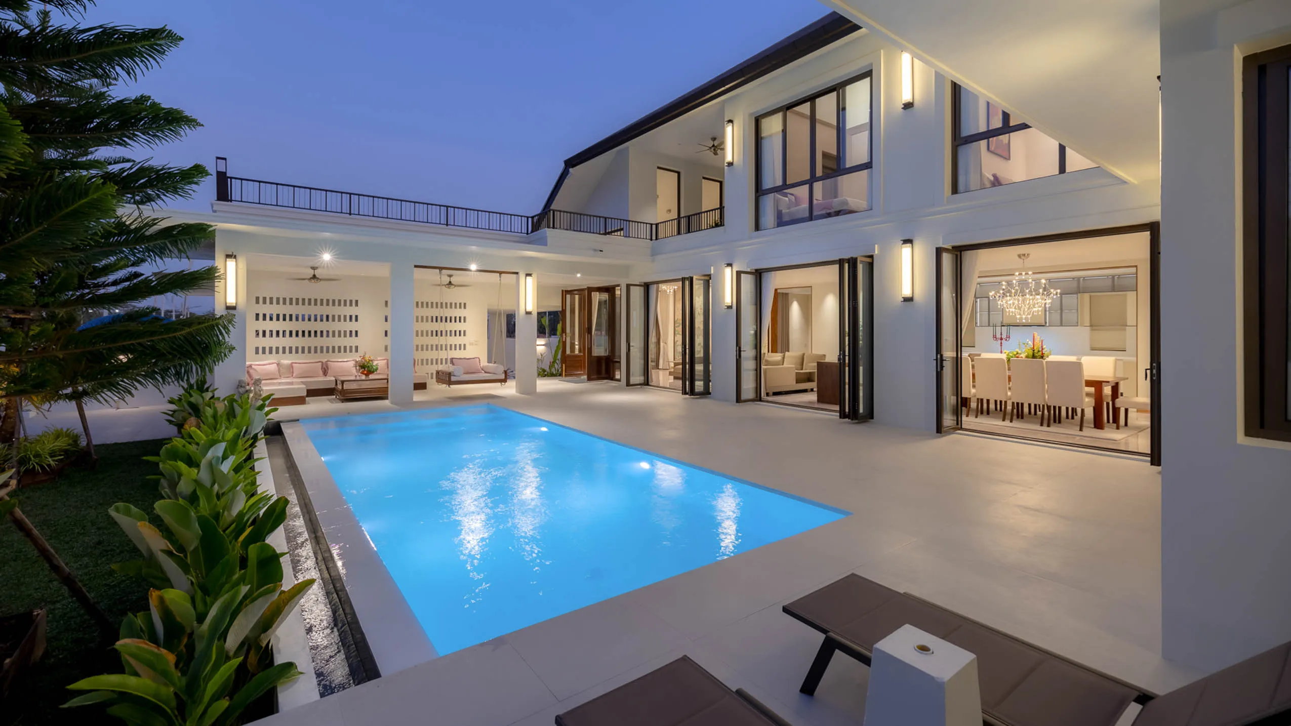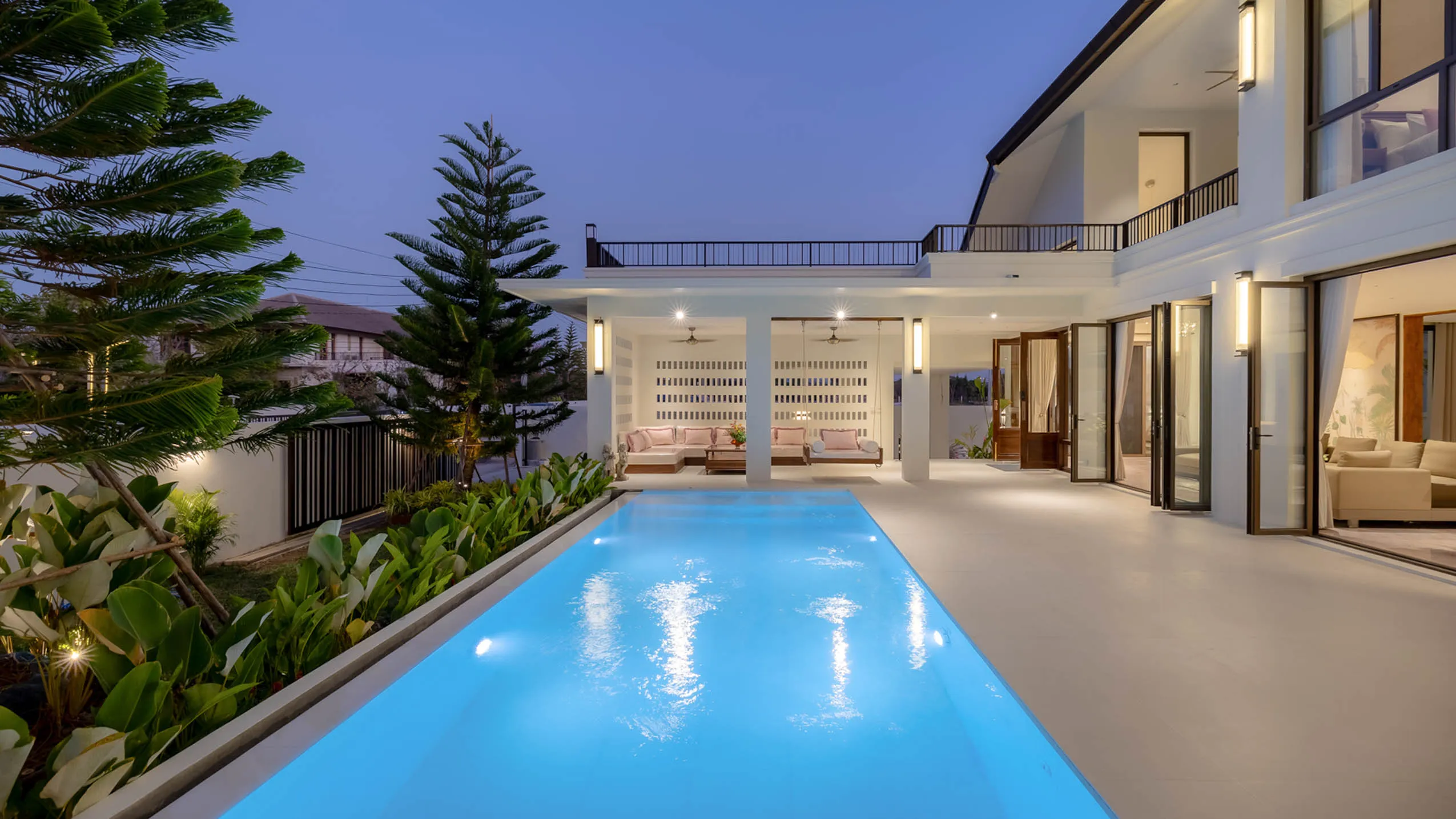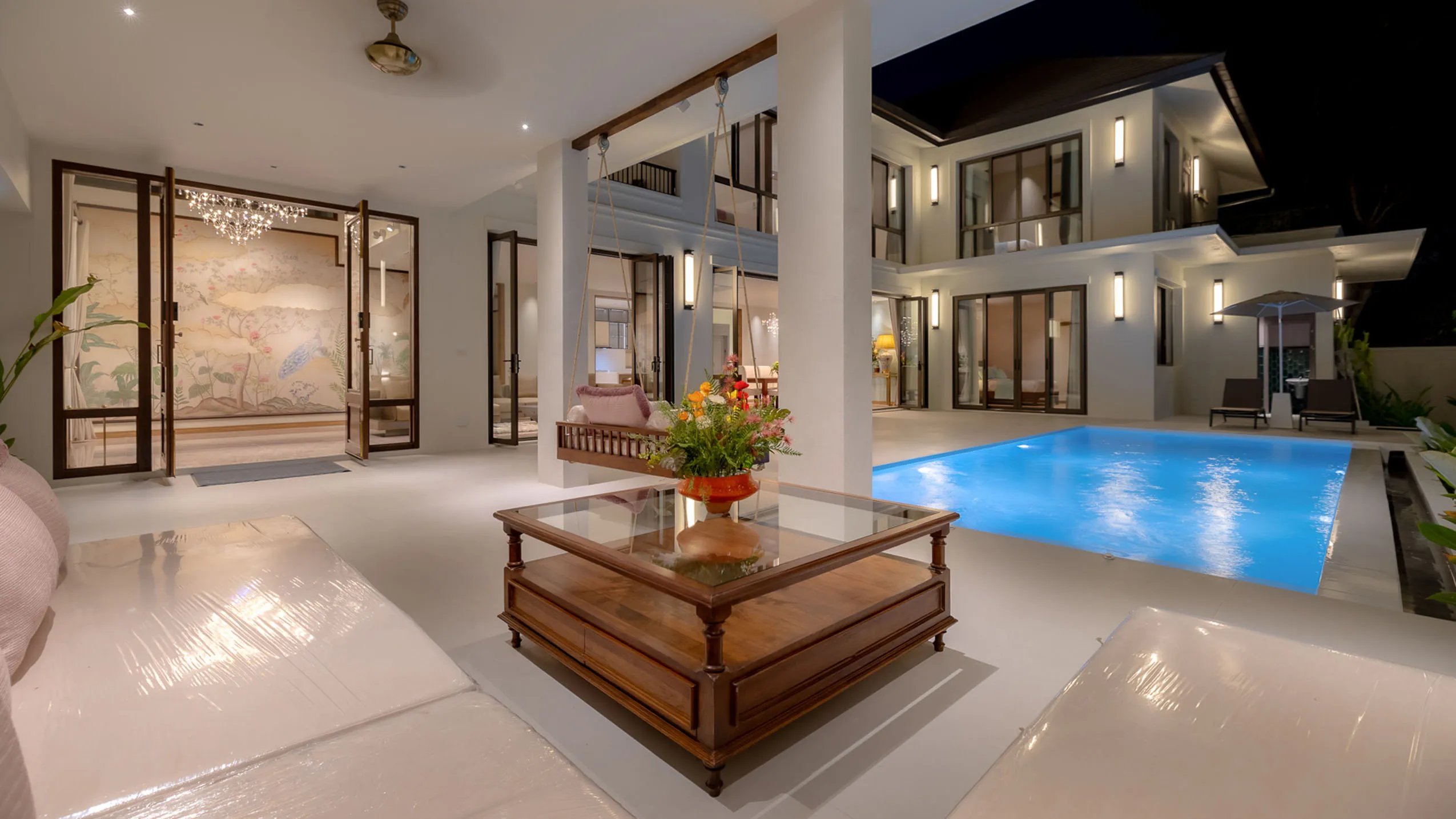 Discover refined luxury in this exceptional 5-bedroom villa located in the peaceful district of Saraphi, Chiang Mai. Designed for comfort and elegance, the home centers around a beautifully appointed 9x3.5m private pool, complete with a stylish covered lounge, cozy sofas, swings, and sunbeds�perfect for both entertaining and relaxing. Inside, a state-of-the-art Western kitchen with a sleek work island and bar complements the spacious open-plan layout, enhanced by high-end chandeliers and warm ambient lighting throughout.