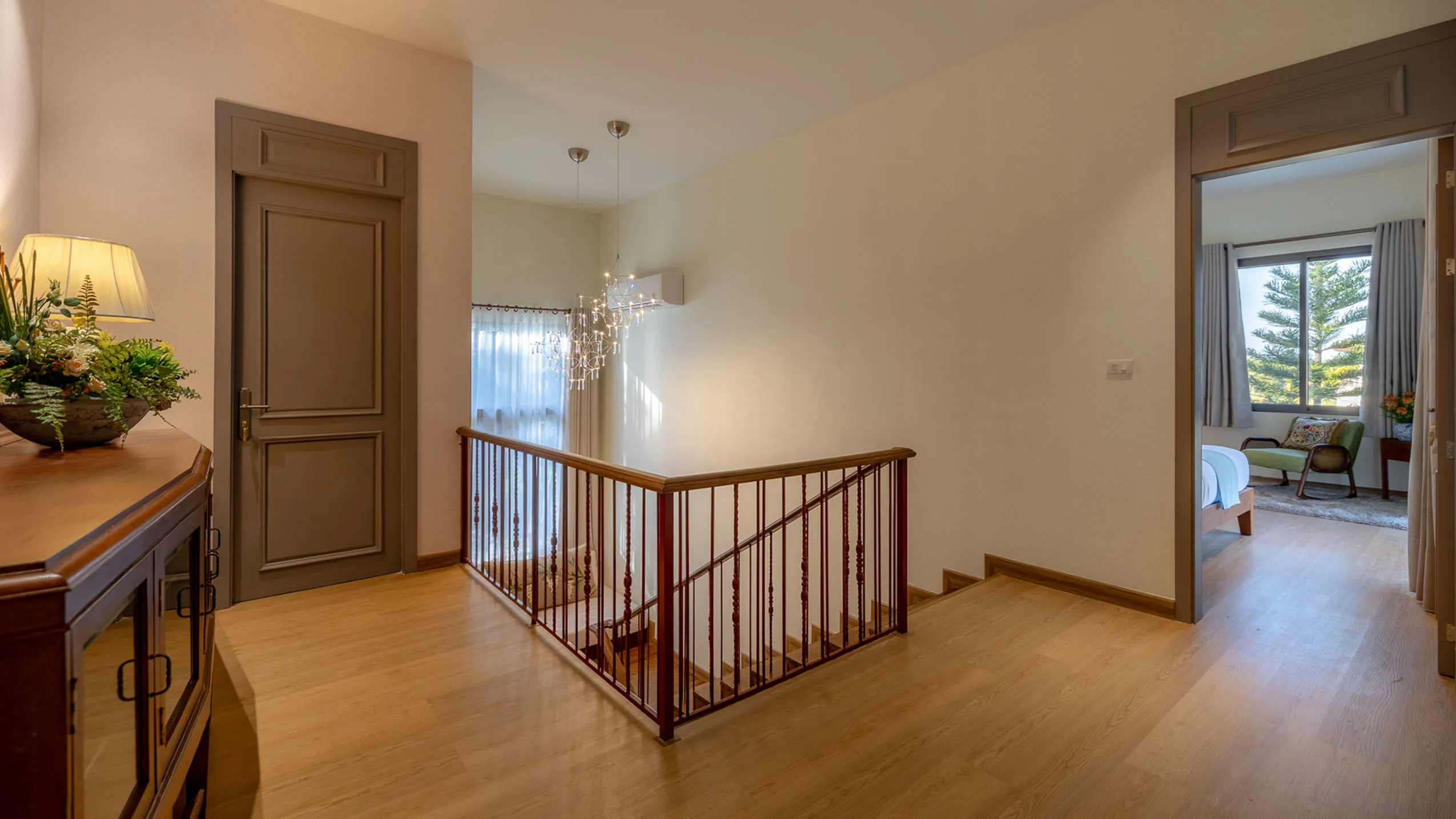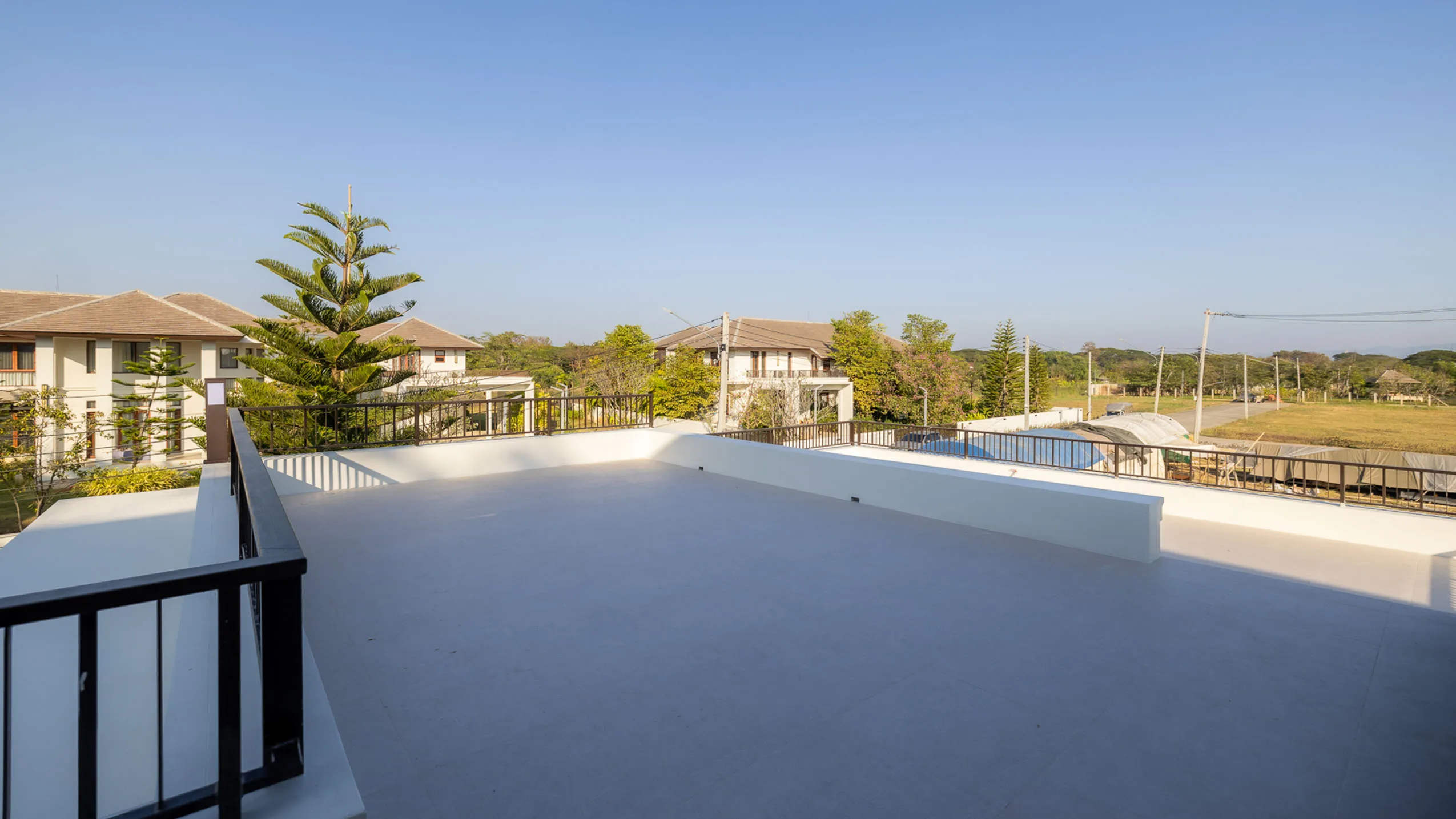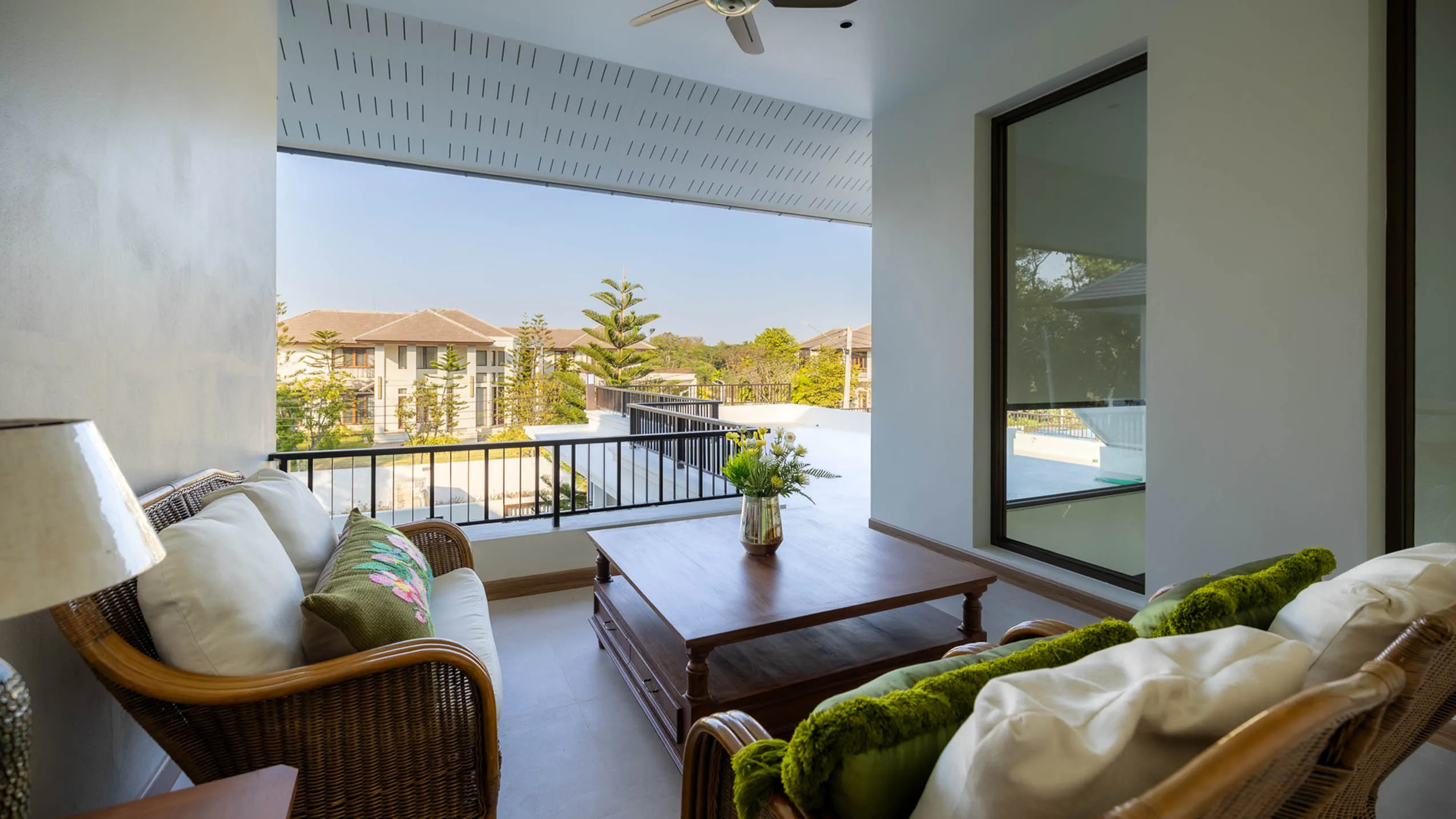Upstairs, each bedroom offers its own private balcony, creating serene personal retreats with views of the surrounding greenery. The master suite is a true sanctuary, featuring a walk-in closet and a spa-inspired en-suite bathroom with a separate bathtub and shower. With custom built-in furnishings, premium materials, and a thoughtful indoor-outdoor flow, this villa presents a rare opportunity to enjoy upscale living in a tranquil Chiang Mai setting.