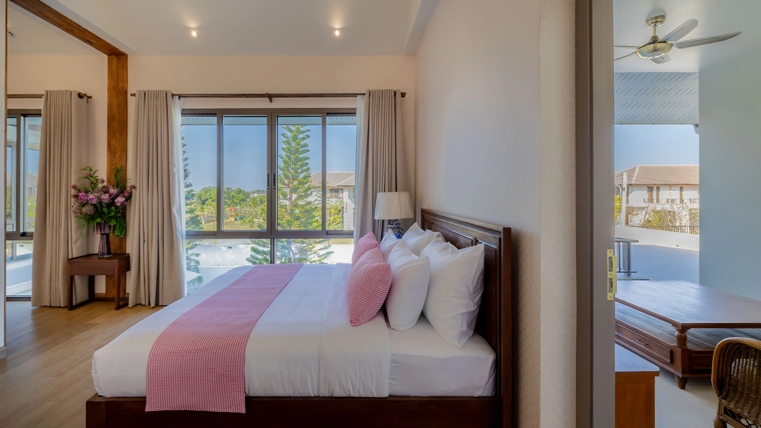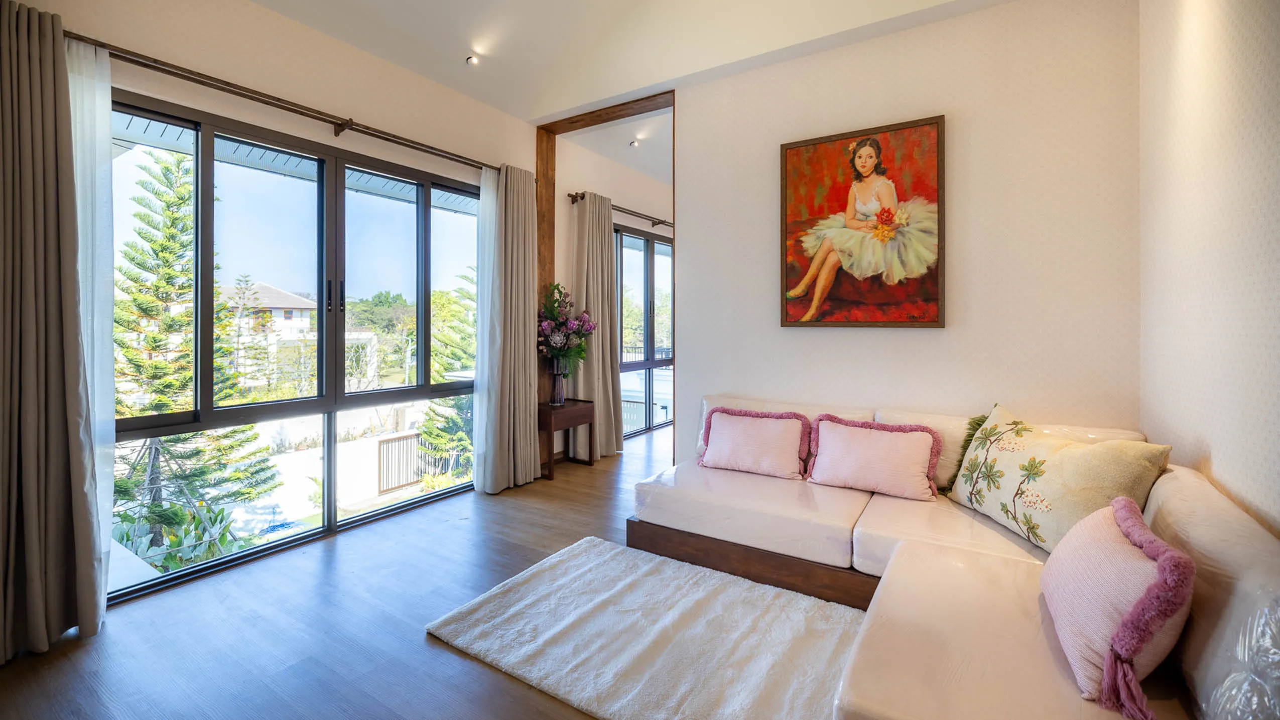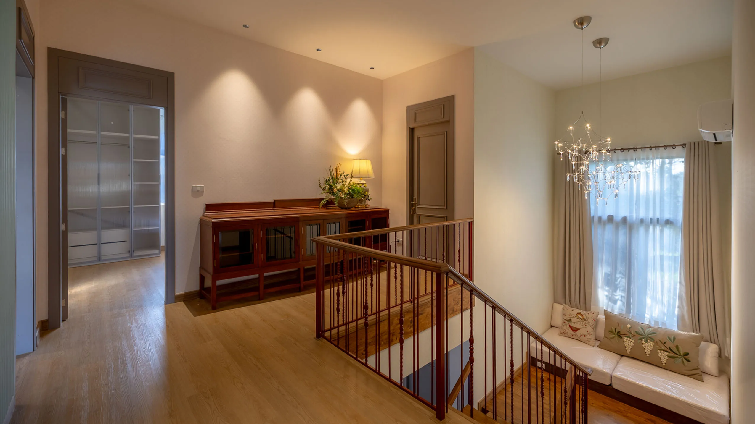 Upstairs, each bedroom offers its own private balcony, creating serene personal retreats with views of the surrounding greenery. The master suite is a true sanctuary, featuring a walk-in closet and a spa-inspired en-suite bathroom with a separate bathtub and shower. With custom built-in furnishings, premium materials, and a thoughtful indoor-outdoor flow, this villa presents a rare opportunity to enjoy upscale living in a tranquil Chiang Mai setting.