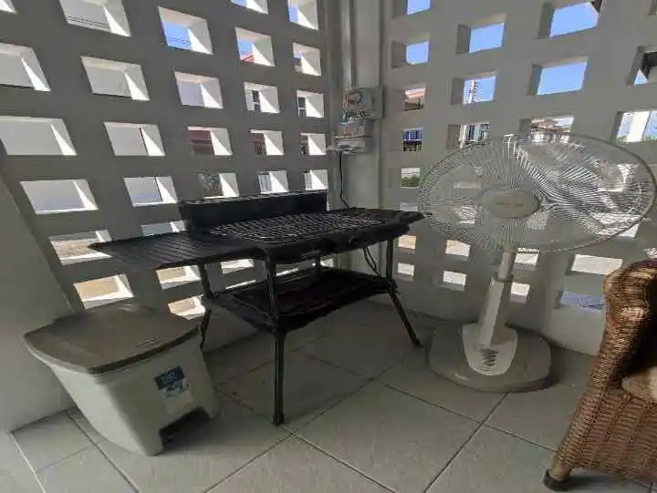 As you enter the open-plan living area, you are greeted by spacious living and dining areas perfect for entertaining. A large dining table is the centerpiece of the space, complemented by a pool table for extra fun. The fully equipped indoor kitchen comes with modern appliances, including a refrigerator, microwave, grill, and rice cooker, making meal preparation a breeze. The outdoor kitchen with BBQ facilities adds a wonderful space for al fresco dining.