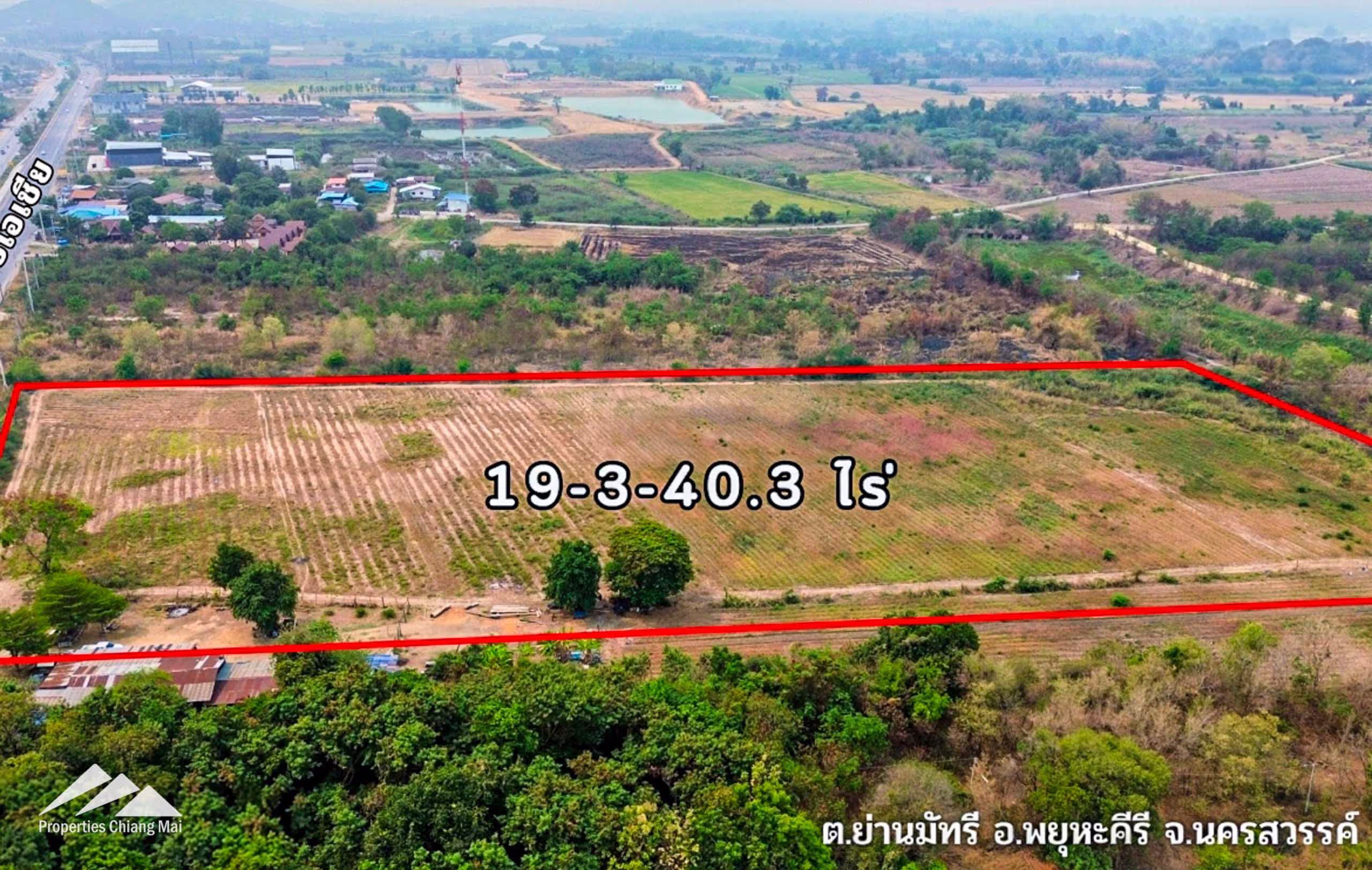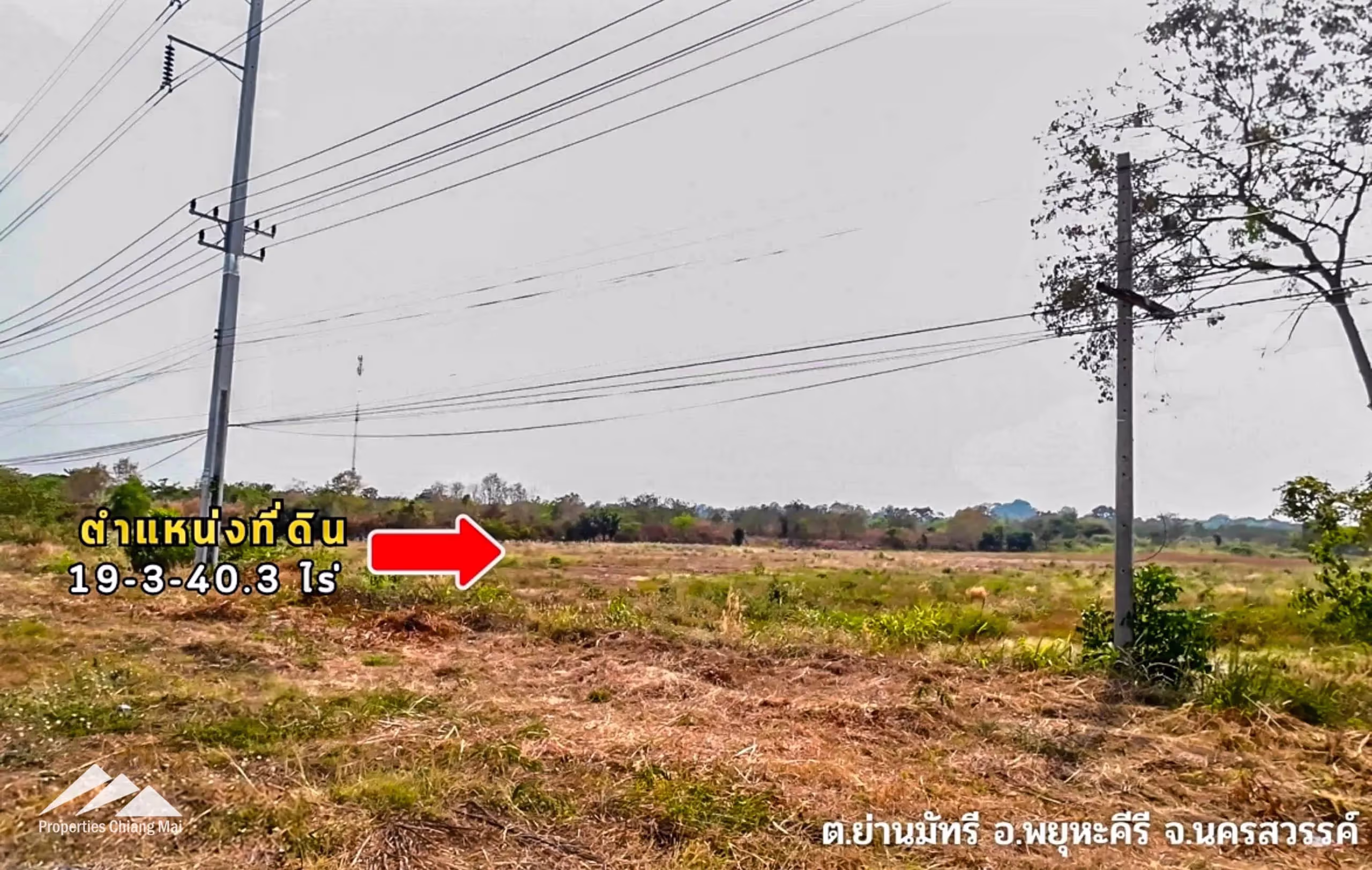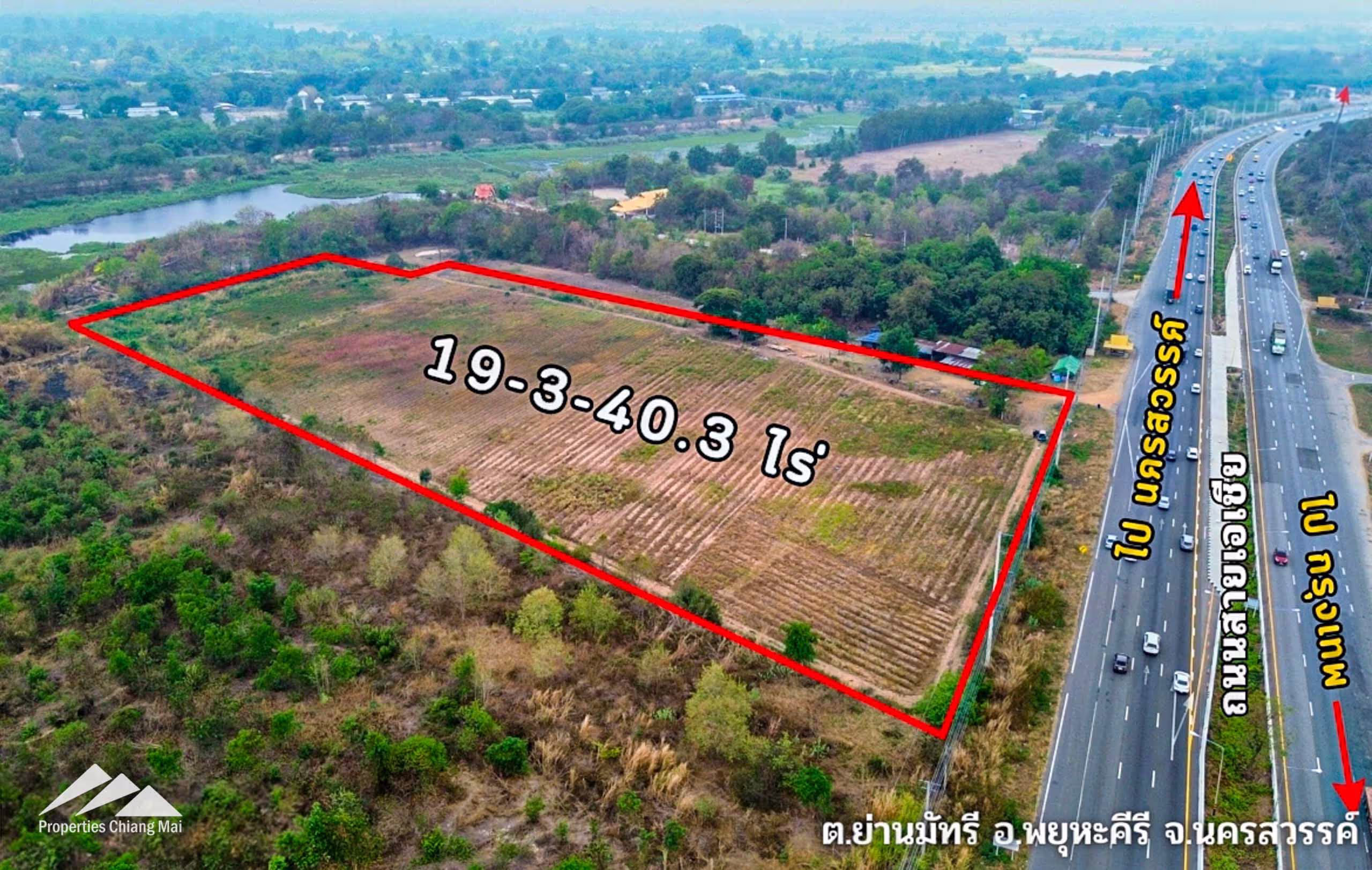 Land for sale next to Asia Road (Northbound) in Phayuha Khiri District, Nakhon Sawan Province. Pricing breakdown and transfer fees:14,975 THB/Sq. wah (5,990,000 THB/Rai). (Discounted from 17,000 THB/Sq. wah - 7,000,000 THB/Rai) transfer fees 50:50