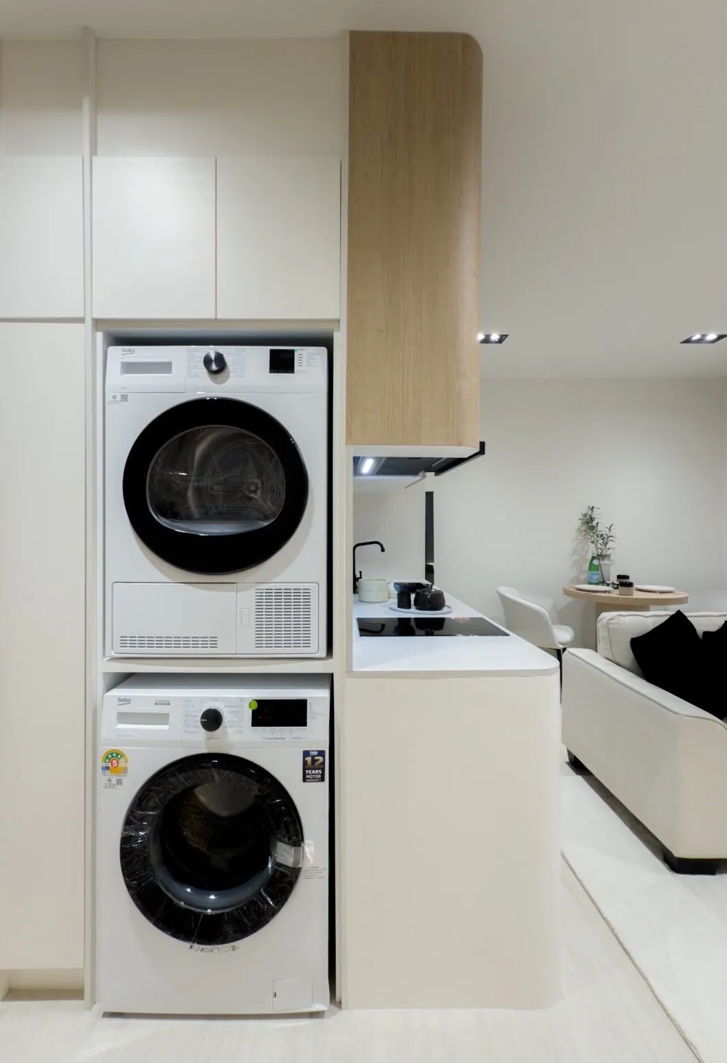 - The Kitchen: Sleek, modern, and fully functional, this compact hub is equipped with everything you need, including a stove, hood, and washing machine, making daily life effortlessly convenient.