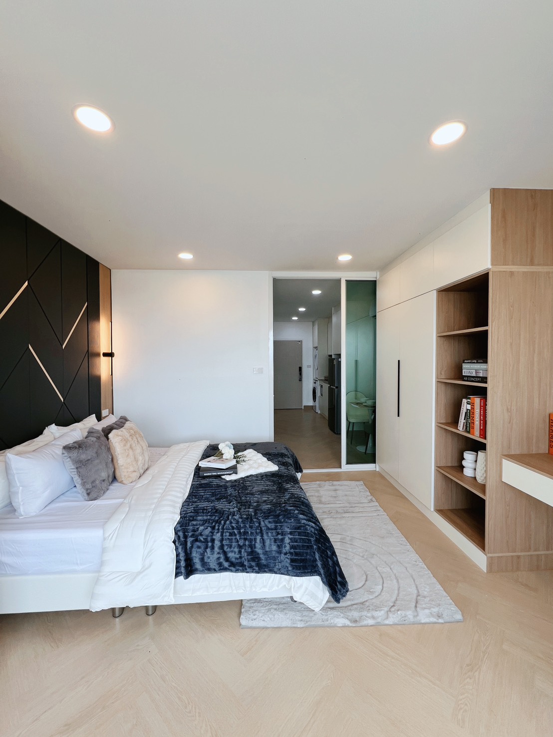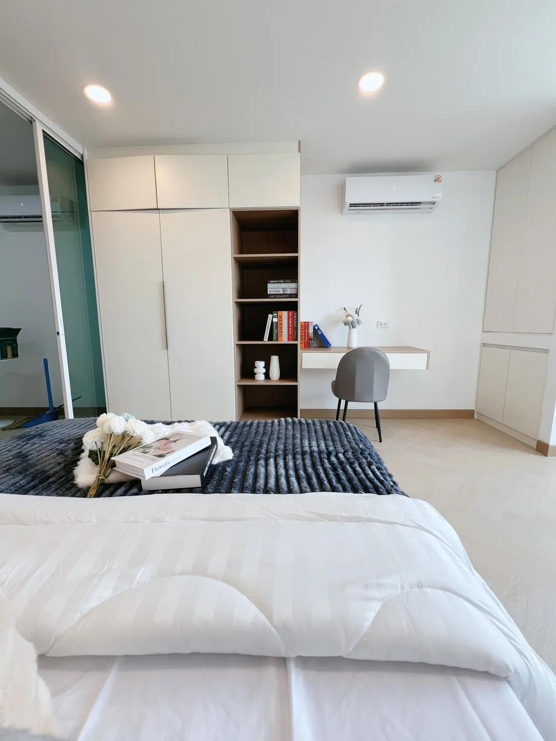 Step through the modern digital door lock into a space transformed. As a top-floor unit, the living area is bathed in natural light, with a custom-built "city view corner" that immediately draws your eye to the sweeping panorama of the Doi Suthep mountains and the sparkling city below. The sleek, functional kitchen is seamlessly integrated, featuring a full suite of brand-new appliances, including a rare and convenient separate dryer. After a day of exploration, the bedroom offers a peaceful retreat, a quiet haven high above the urban buzz.