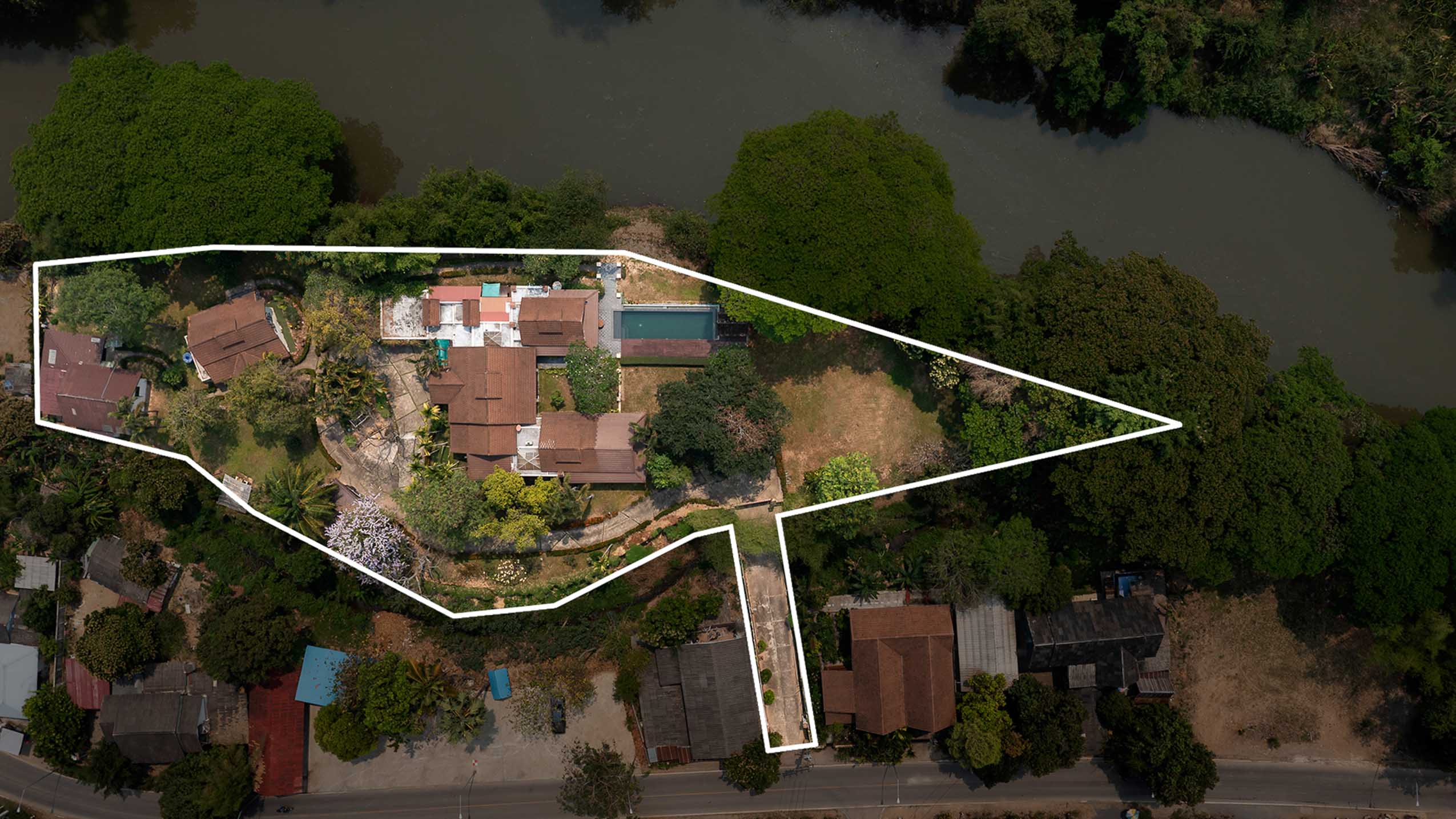 This rare riverside property spans over 2 Rai 2 Ngan 28 Sq.wah (approximately 4,512 sqm) with 150 meters of direct Ping River frontage, offering peace, shade from a majestic rain tree, and stunning views. Located in Sop Mae Kha, Hang Dong, Chiang Mai, this spacious and well-appointed estate is ideal for luxurious private living or a boutique riverside retreat.
