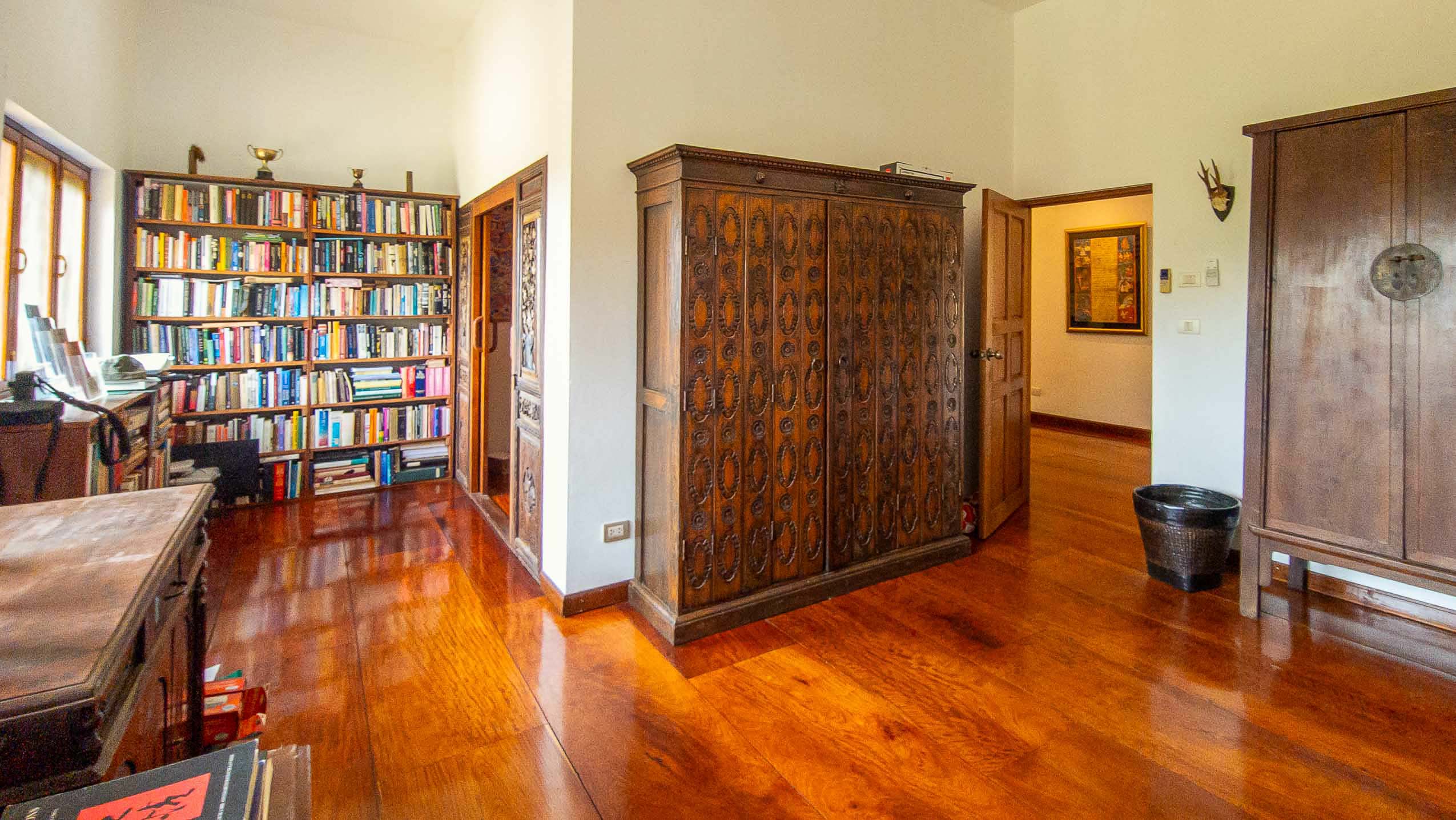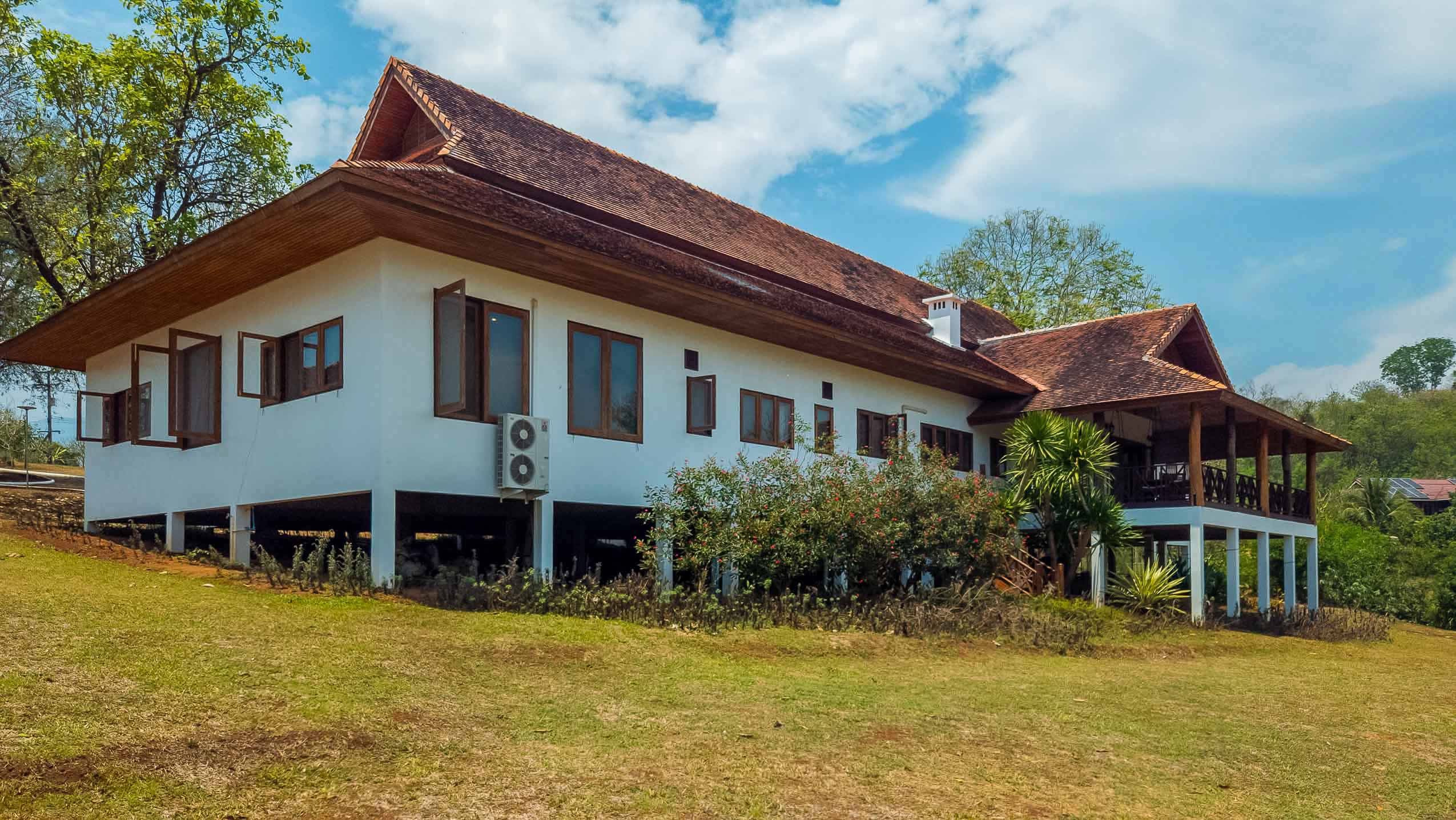 A rare opportunity to own a flood-free, expansive estate located in Mae Ann, in the hills of northern Chiang Mai, just 35 km from Chiang Mai International Airport and only a few kilometers from Prem International School. This exceptional property blends traditional Lanna Thai architecture with Western standards and feng shui principles, and includes full Chanote title deeds.