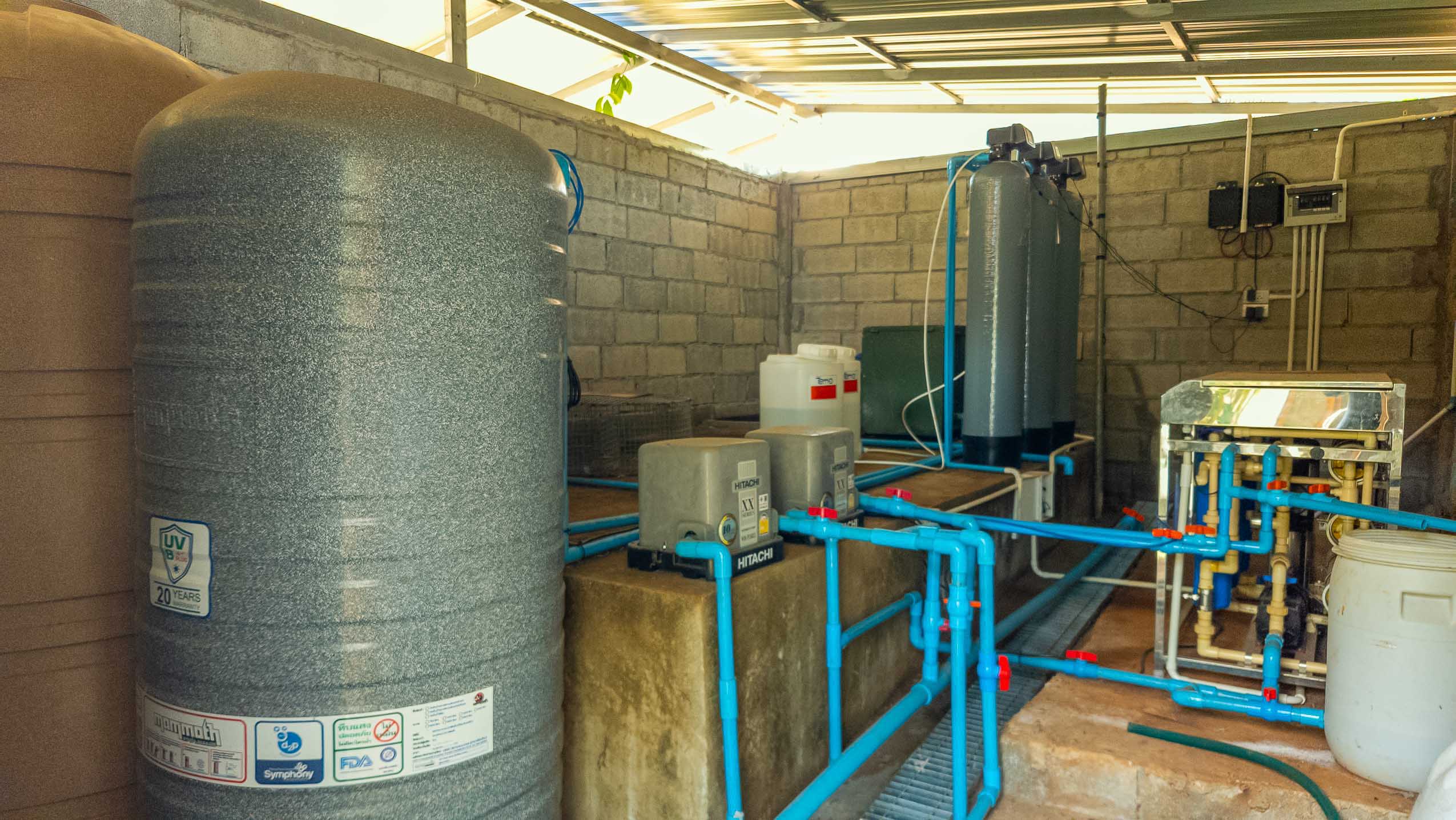 - Town water with filtration + 4 garden storage tanks