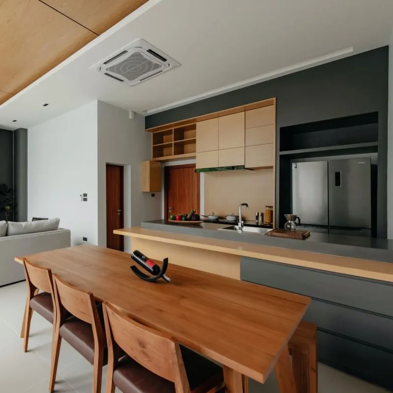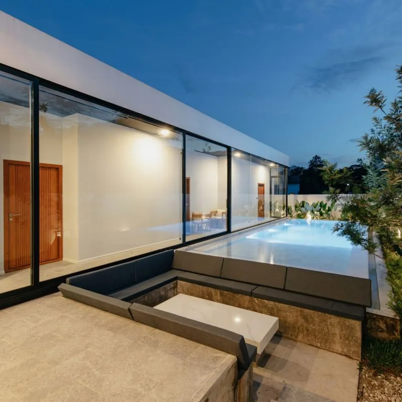 Experience luxury living in this stunning 1-storey pool villa with 4-meter-high ceilings, boasting 3 bedrooms, 4 bathrooms, a saltwater swimming pool, teak dining table, and European kitchen. This fully decorated and ready-to-move-in villa also features built-in furniture with high-quality genuine wood and a CCTV system for added security. Located in a prime area with 24-hour security from SECOM, you'll have peace of mind while enjoying the nearby attractions.