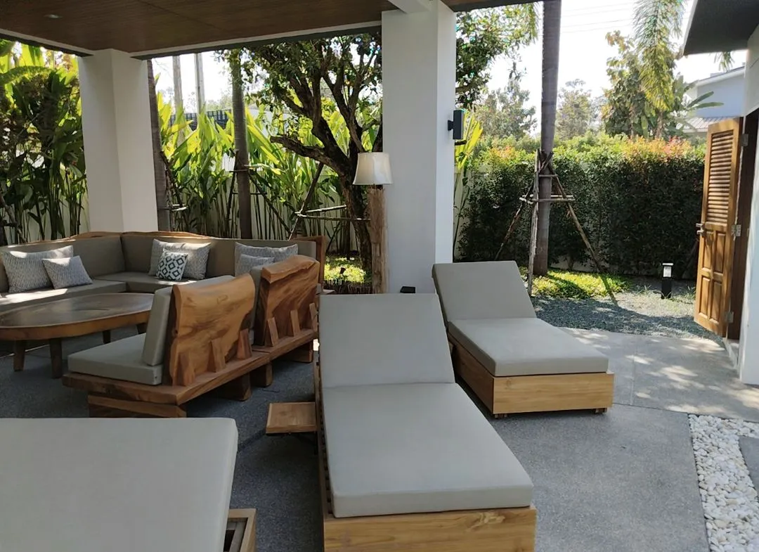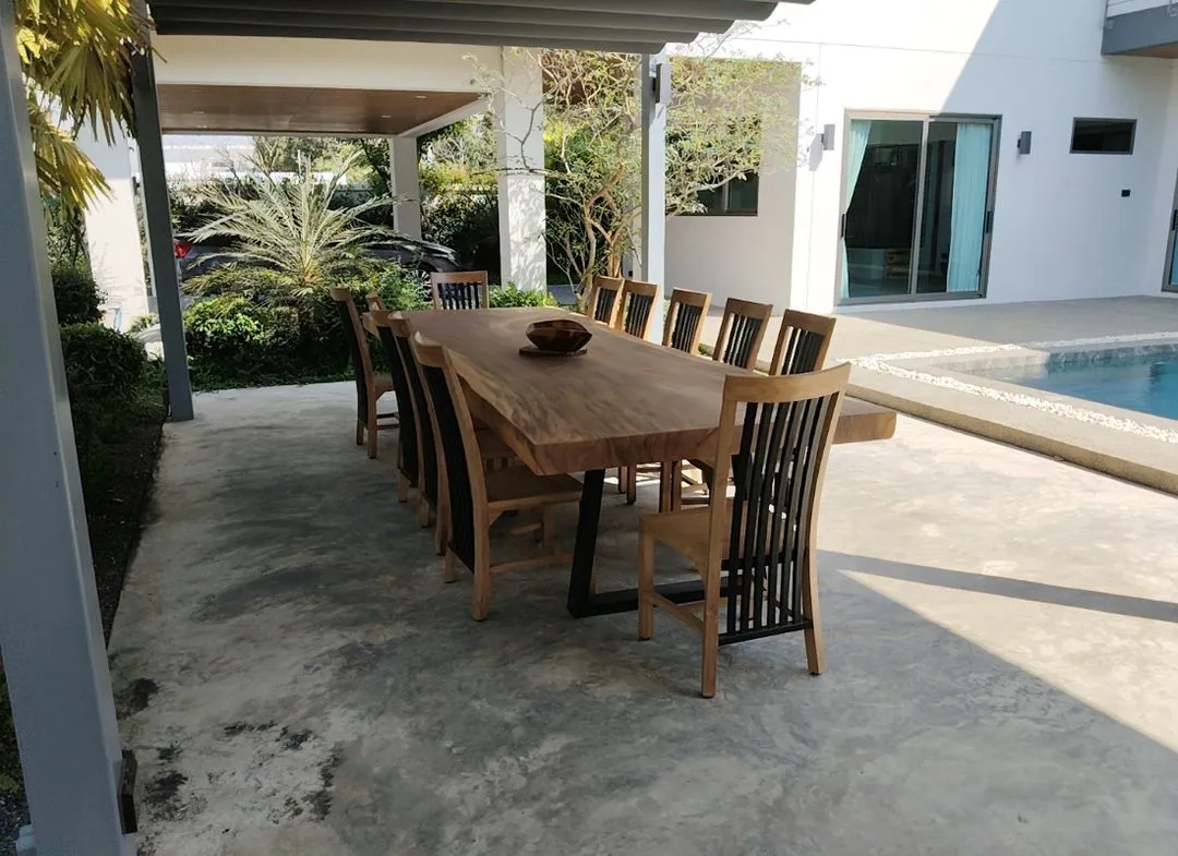 - Outdoor lounge & dining area (real wood sofa & large dining table)