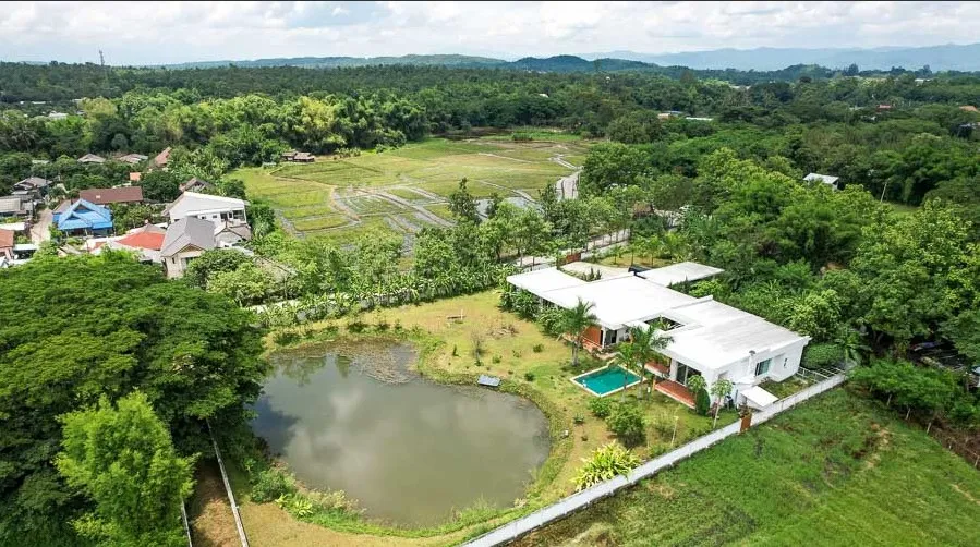 The villa is located in Mae Rim, Chiang Mai, a vibrant and picturesque area surrounded by nature and abundant in cultural charm.