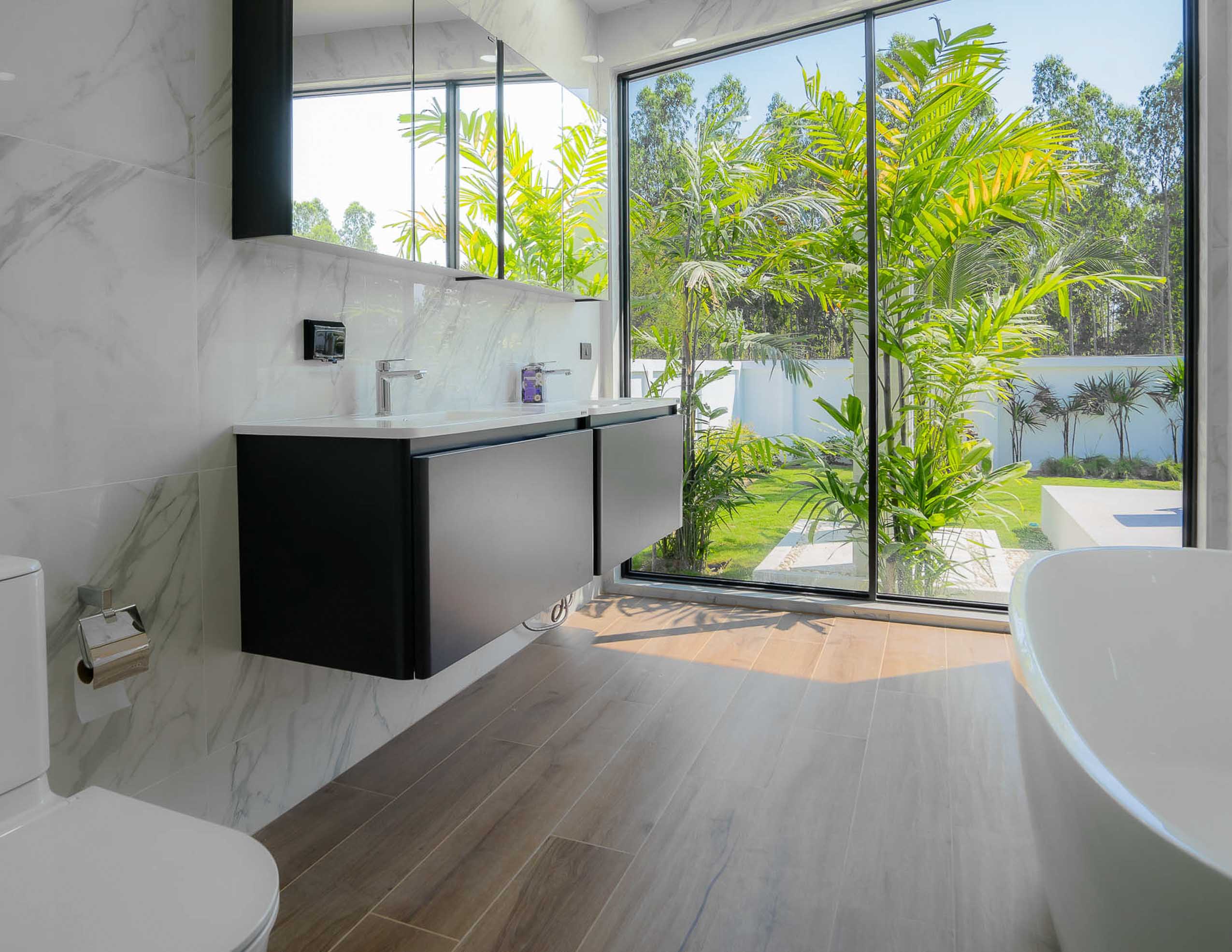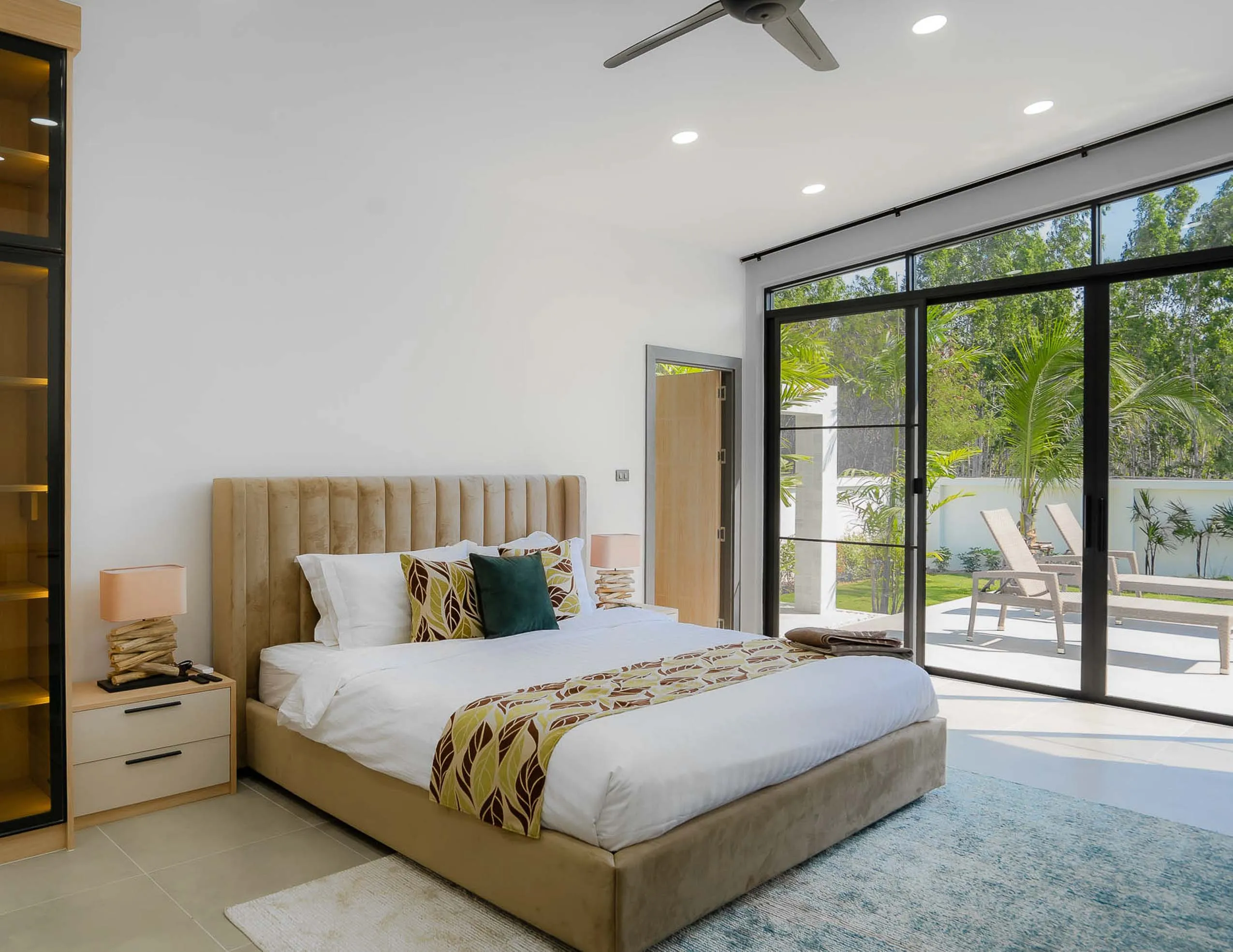 - Master suite with en-suite bathroom, walk-in wardrobe, and pool-facing gallery window