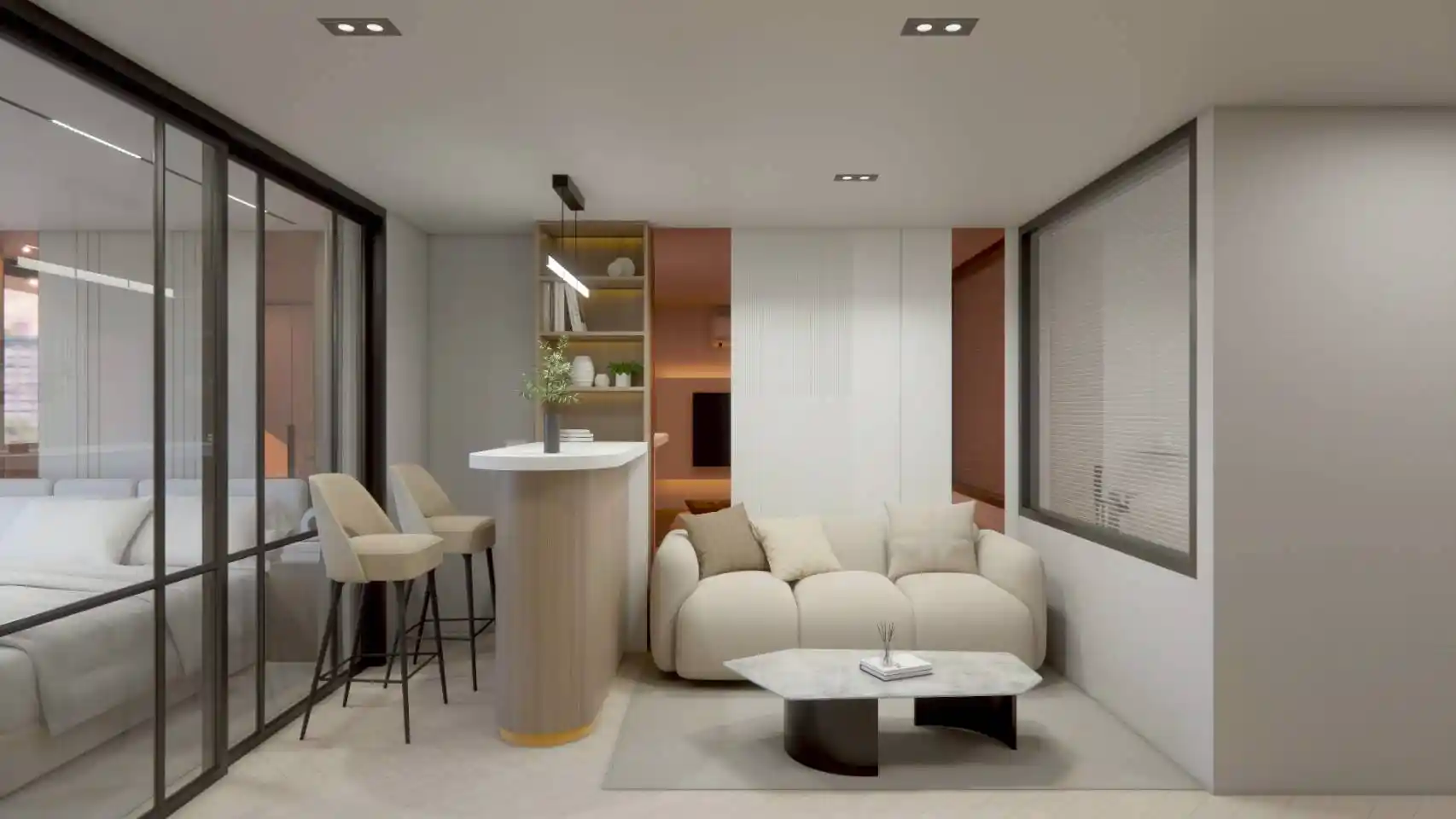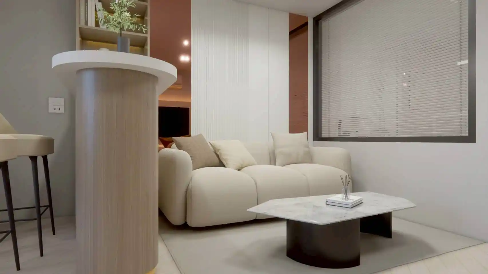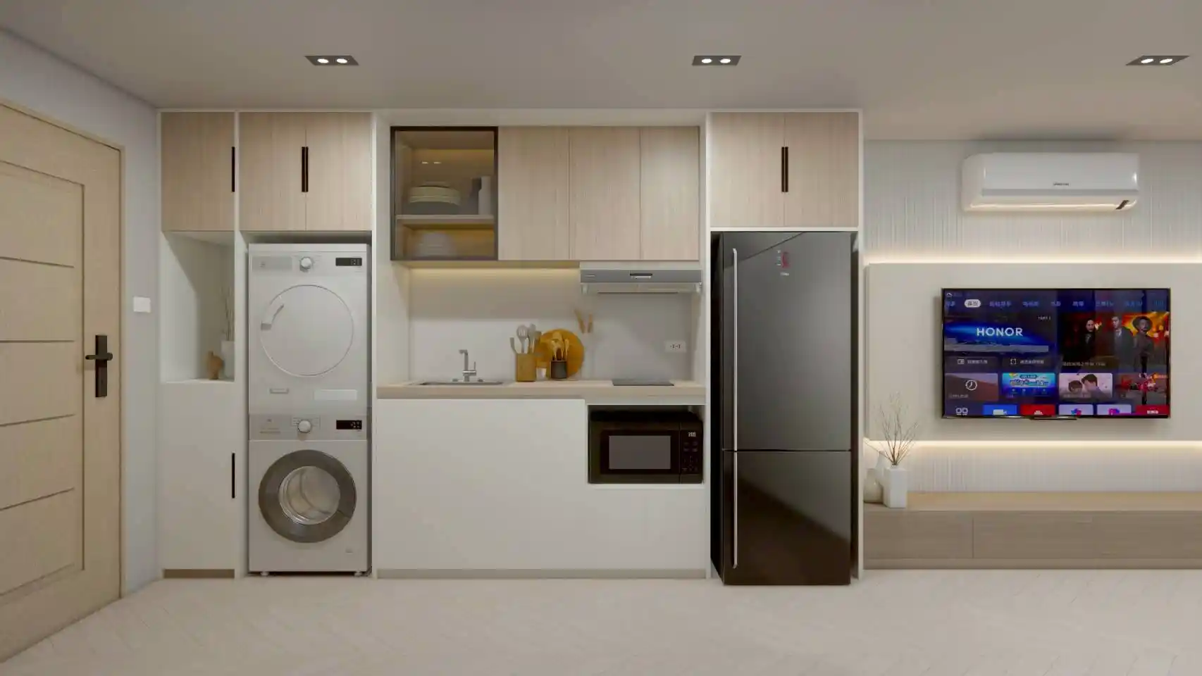 Step inside to a sanctuary of calm. This completely renovated unit, set for a December 2025 delivery, feels bright and airy, with the living space flowing onto a large balcony offering dynamic views of the iconic MAYA shopping center. The sleek, modern kitchen is fully equipped for everything from a quick breakfast to dinner parties. After a busy day, the bedroom offers a peaceful retreat, while a dedicated workspace corner provides the perfect spot for productivity. Every detail, from the digital door lock to the all-new wiring, has been designed for your comfort and peace of mind.