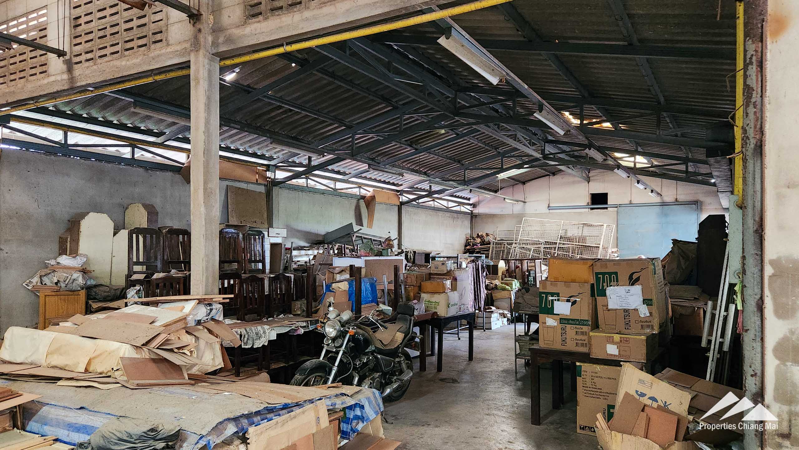 This land with warehouse/ previous furniture factory has direct access to the Chiang Mai - Lampang highway just 240 m. in the alley.? ?The existing structure could also be used for other types of manufacturing or used simply as a warehouse/storage facility, or knocked down to use the land for some other purpose.? The location is great, so lots of possibilities.Features: