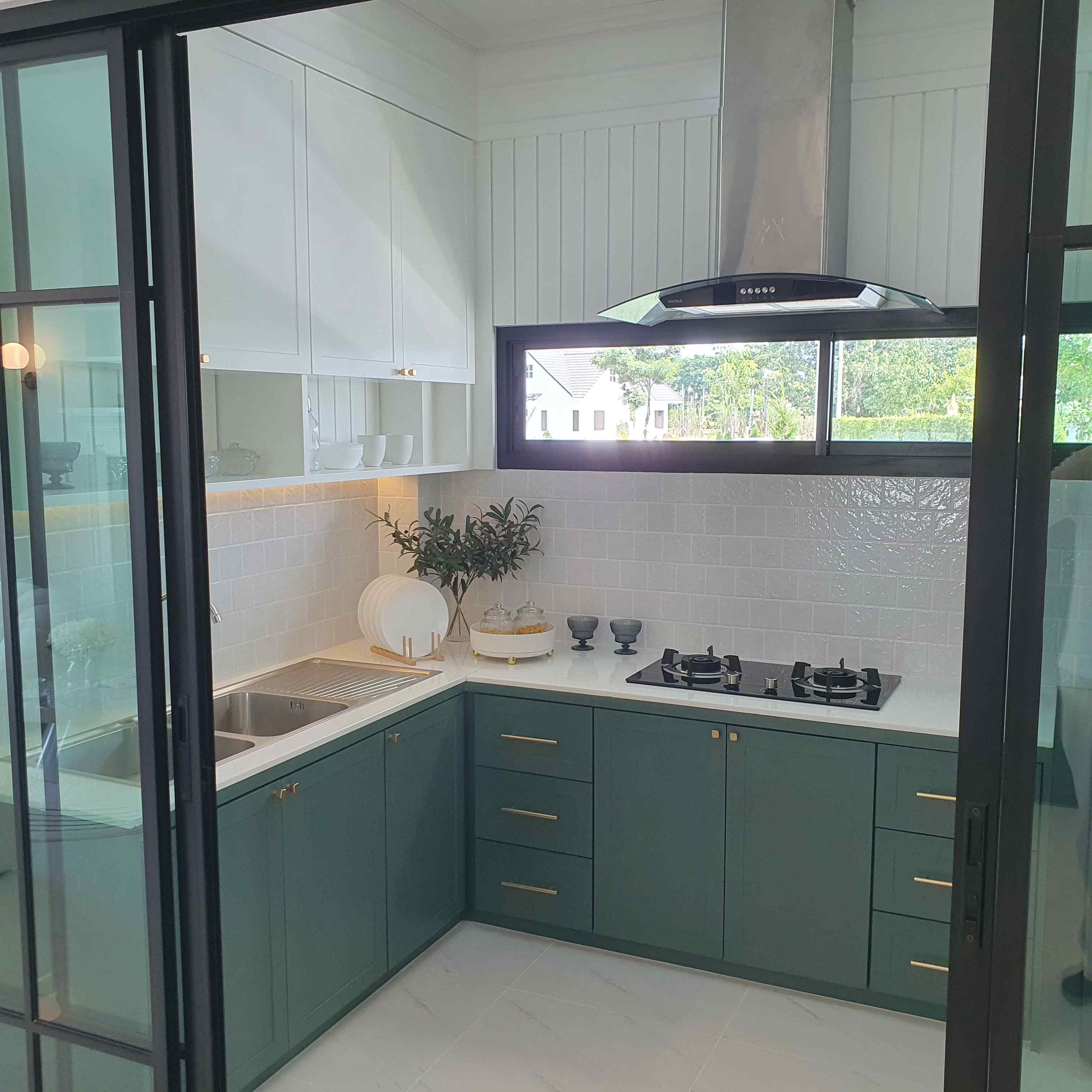 - เคาน์เตอร์ครัวหินแกรนิตพร้อมเตาแก๊สเครื่องดูดควันและอ่างล้างจาน