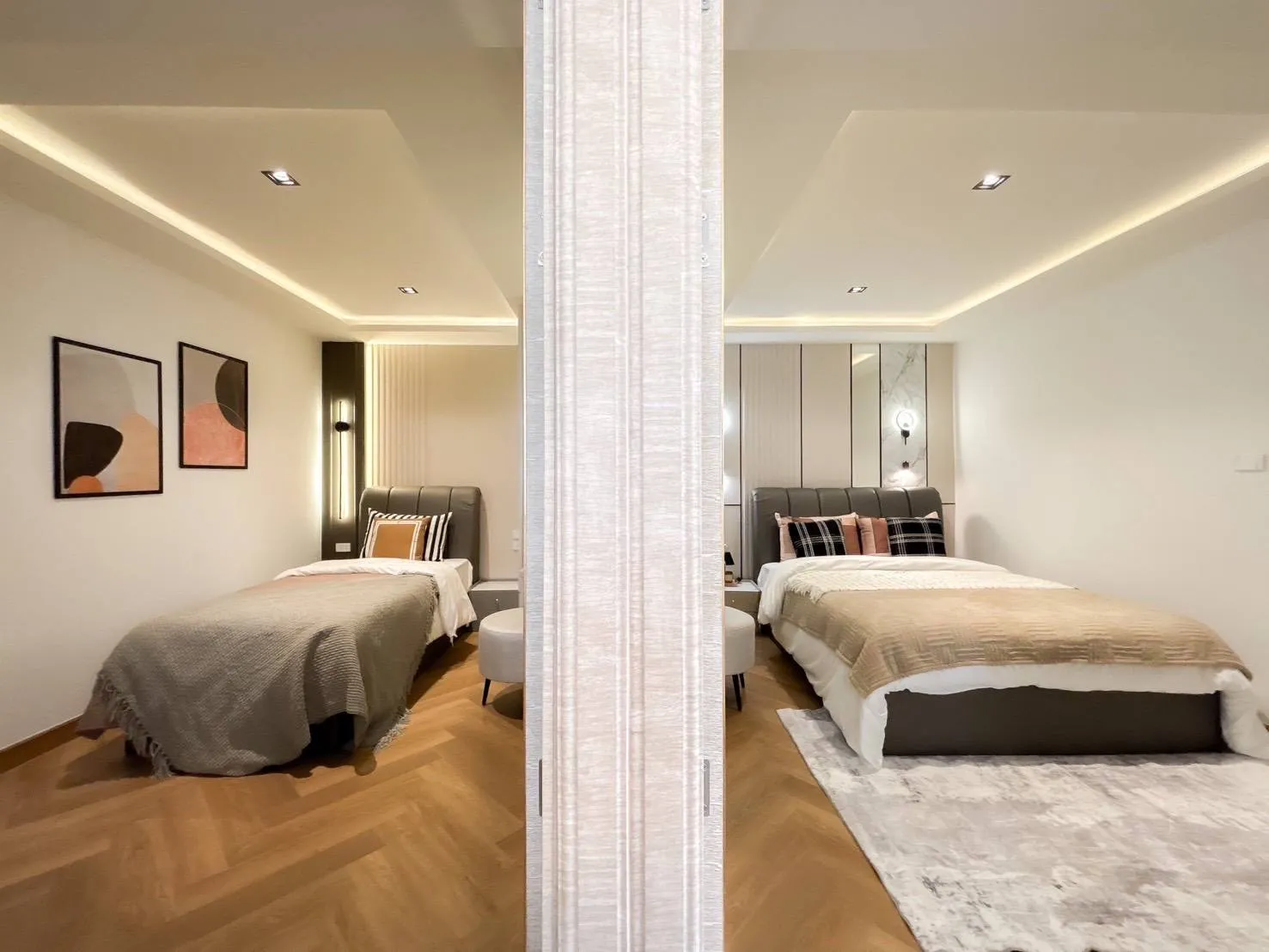 - ห้องนอนและอ่างอาบน้ำ: ผ่อนคลายในห้องนอนอันเงียบสงบสองห้อง แต่ละห้องมีทีวี Android ขนาด 43 นิ้วของตัวเองอย่างรอบคอบห้องน้ำที่ได้รับการปรับปรุงใหม่ได้อย่างไร้ที่ติ เป็นสิ่งอำนวยความสะดวกที่โดดเด่น นำเสนออ่างอาบน้ำที่ผ่อนคลายซึ่งเป็นความหรูหราหายากเพื่อหลีกเลี่ยงความเครียดในแต่ละวัน