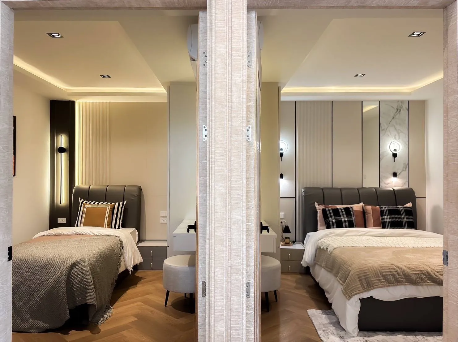 ออกแบบด้วยโทนสีอบอุ่นและมุ่งเน้นไปที่ความหรูหรา ทุกรายละเอียดในบ้านนี้ได้รับการคัดสรรมาเพื่อประสบการณ์การใช้ชีวิตที่สูงขึ้นตำแหน่งมุมทำให้พื้นที่มีแสงธรรมชาติ ในขณะที่การรักษาความปลอดภัยที่ล้ำสมัยของล็อคประตูดิจิตอลให้ความสบายใจ