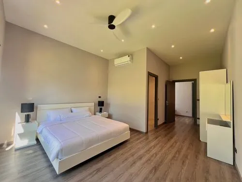 ย้ายจากพื้นที่นั่งเล่นแบบเปิดโล่งนี้ไปยังห้องนอนใหญ่ซึ่งกว้างขวางมากพร้อมตู้เสื้อผ้าขนาดใหญ่และห้องน้ำหลักซึ่งคุณสามารถใช้เวลาผ่อนคลายในอ่างอาบน้ำลึกได้หลายชั่วโมง