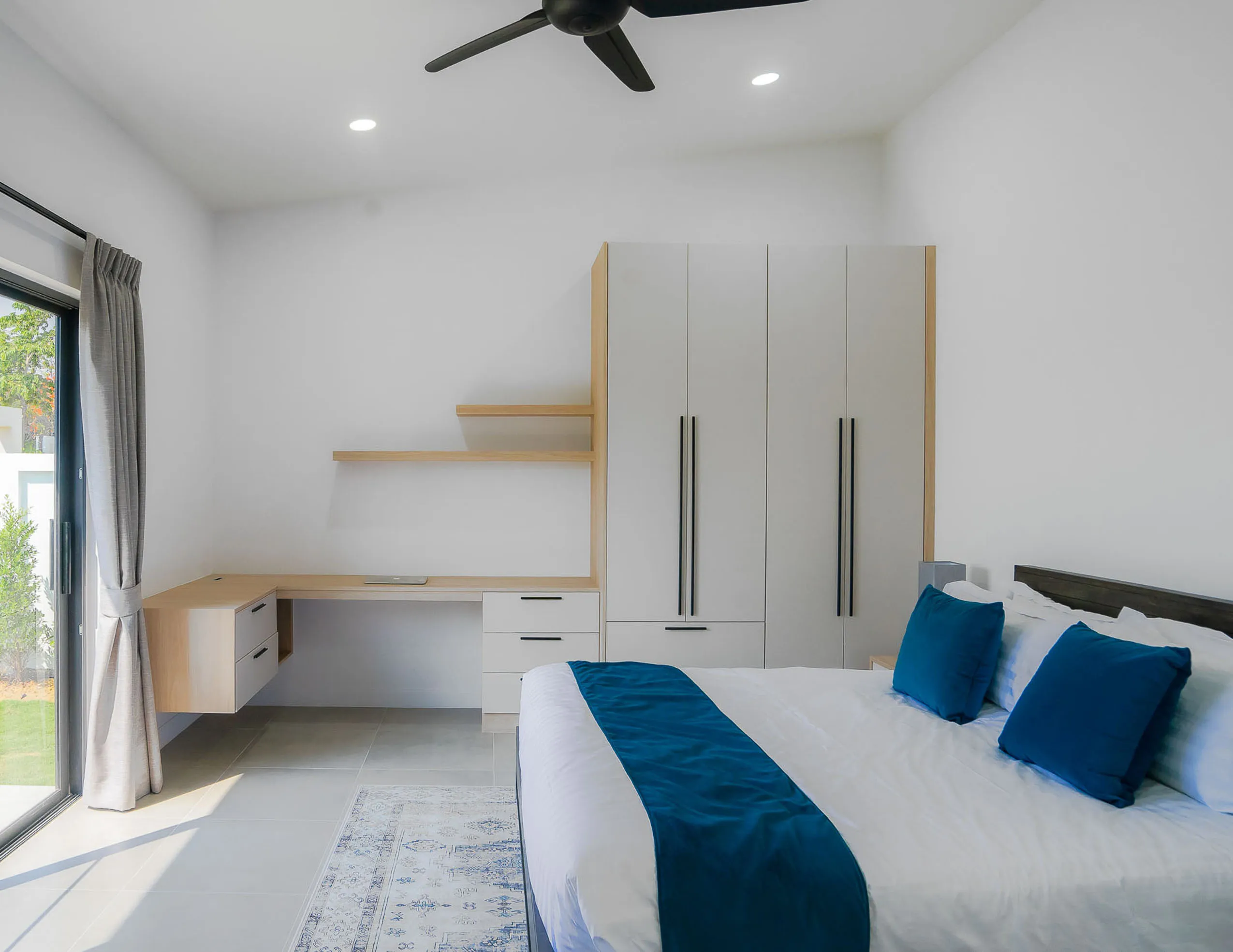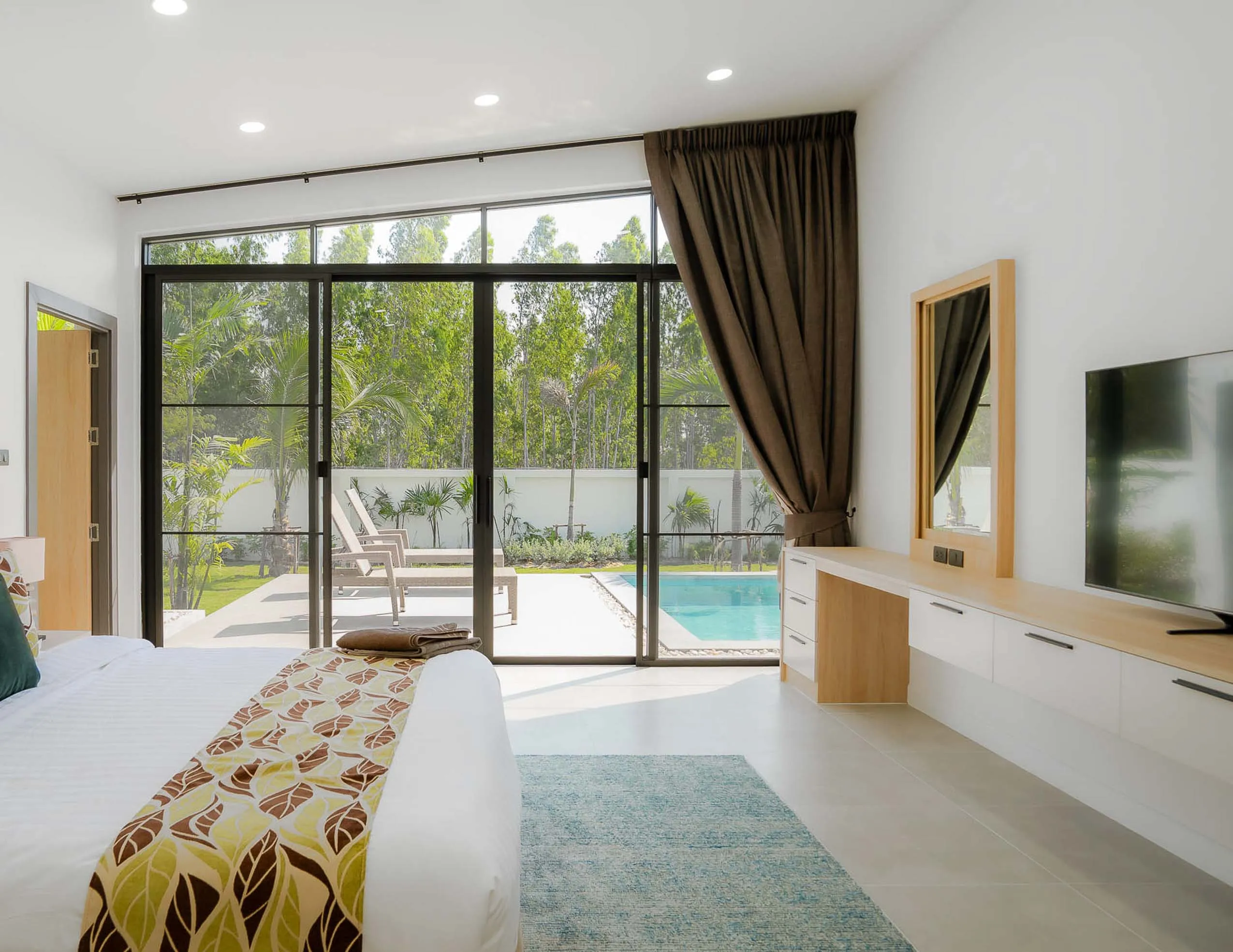 พูลวิลล่าที่ทันสมัยออกแบบอย่างสวยงามนำเสนอการใช้ชีวิตที่กว้างขวางโดยเน้นแสงธรรมชาติความเป็นส่วนตัวและเลย์เอาต์อัจฉริยะบ้านมีเพดานสูงและกระจกจากพื้นจรดเพดานที่ดึงดูดบรรยากาศที่สดใสและสร้างบรรยากาศที่สดใสและสร้างบรรยากาศที่สดใสห้องครัวแบบเปิดพร้อมบาร์อาหารเช้าสามารถมองเห็นสระว่ายน้ำที่เพรียวบาง 15 เมตร ในขณะที่ประตูลานขนาดใหญ่ช่วยให้สามารถเข้าถึงสวนได้อย่างราบรื่น